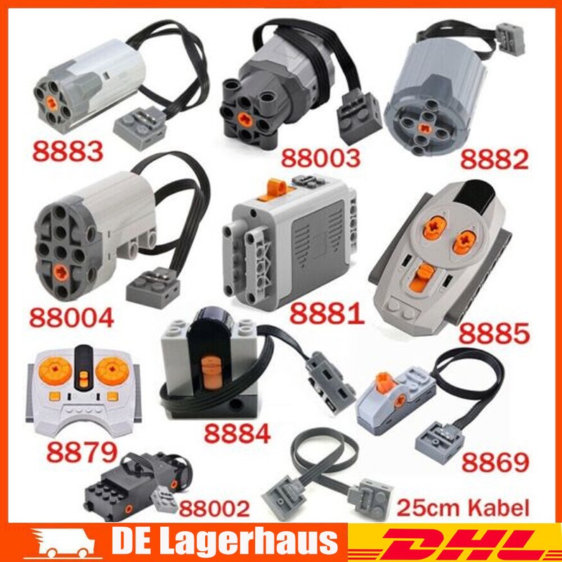 Alle Motoren in unserem Shop sind mit allen PF von original LEGO Produkten kompatibel. Wenn Sie jedoch unseren Empfänger/IR-Fernbedienung (8884/8885/8879) separat kaufen, um mit der originalen LEGO Fernbedienung übereinzustimmen, kann sie nicht übereinstimmen. Es ist auch nicht möglich, eine Fernbedienung zu kaufen, die mit dem originalen LEGO Empfänger übereinstimmt. Weil Lego Infrarot ist, ist unser Geschäft 2.4G Kanal.