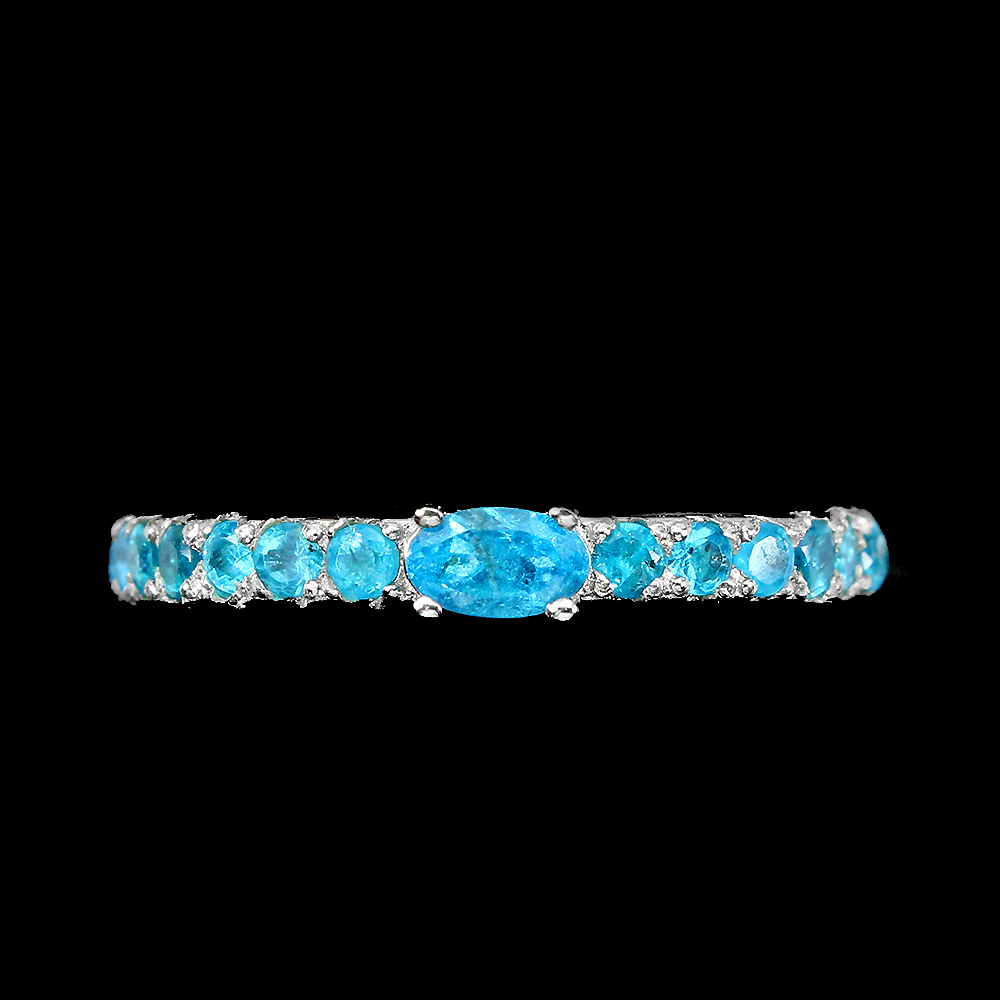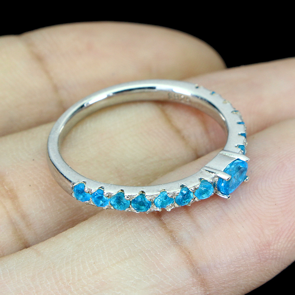 Unheated Oval Apatite 5x3mm 14K White Gold Plate 925 Sterling Silver Ring Size 9