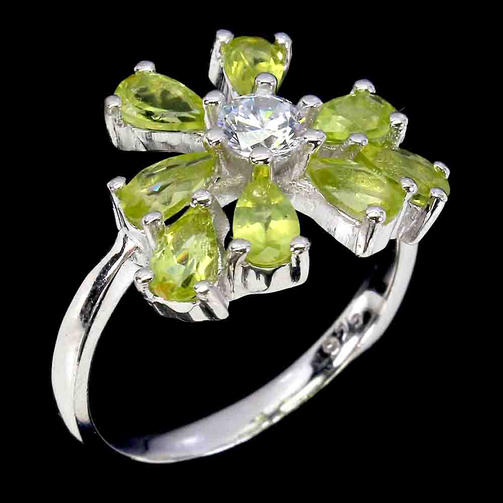 Unheated Pear Green Peridot 5x3mm Simulated Cz 925 Sterling Silver Ring Size 8