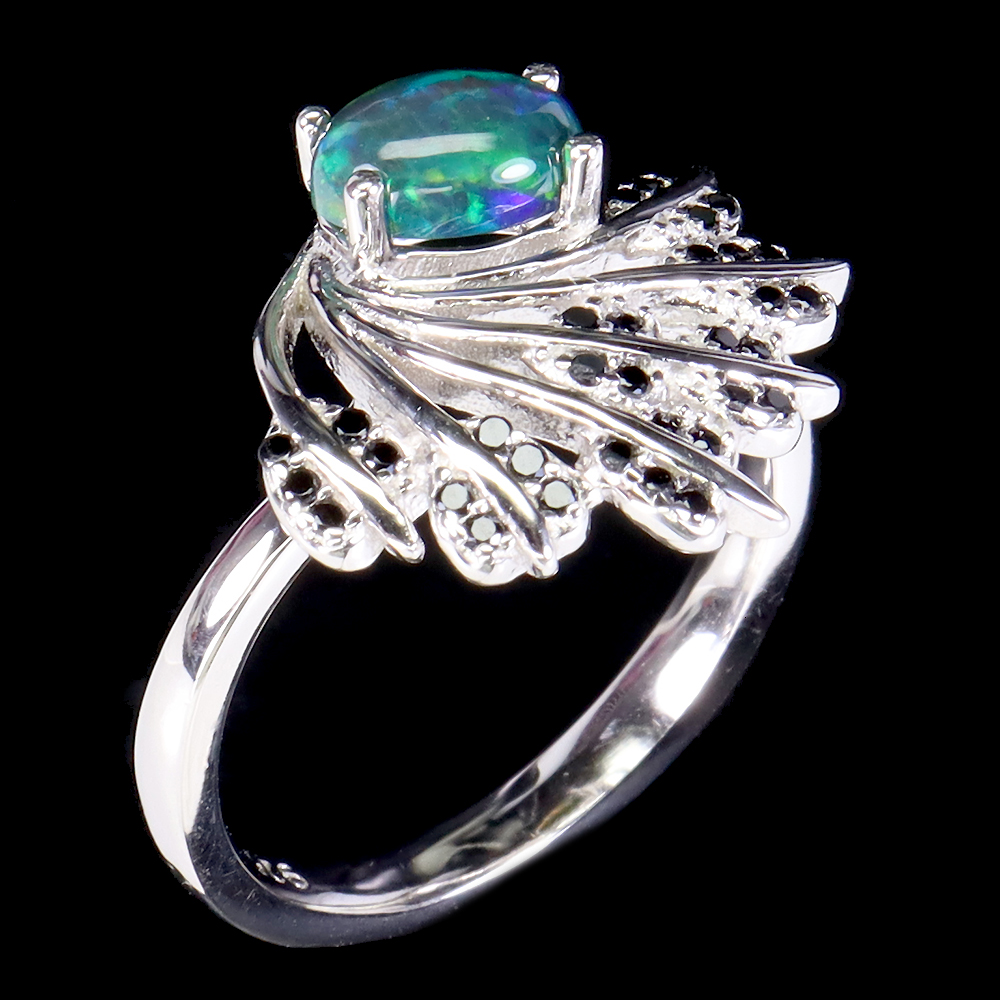 Clarity Enhanced Oval Black Opal 7x5mm Black Spinel 925 Sterling Silver Ring Size 7