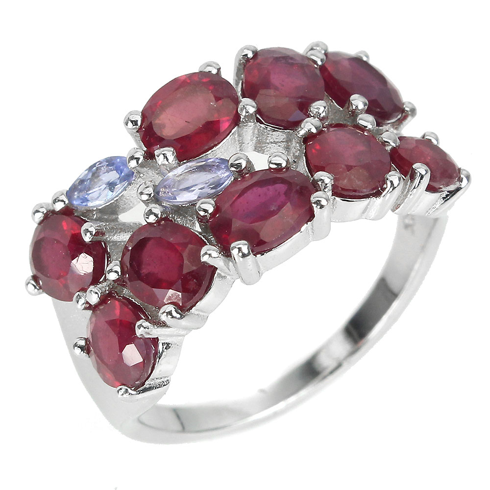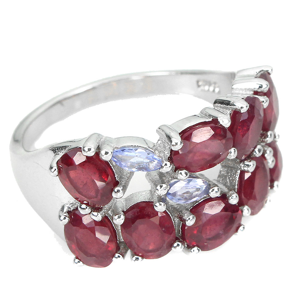 Heated Oval Ruby 5x4mm Tanzanite 14k White Gold Plate 925 Sterling Silver Ring