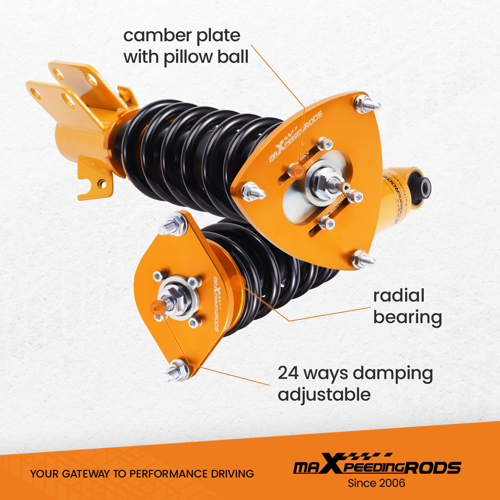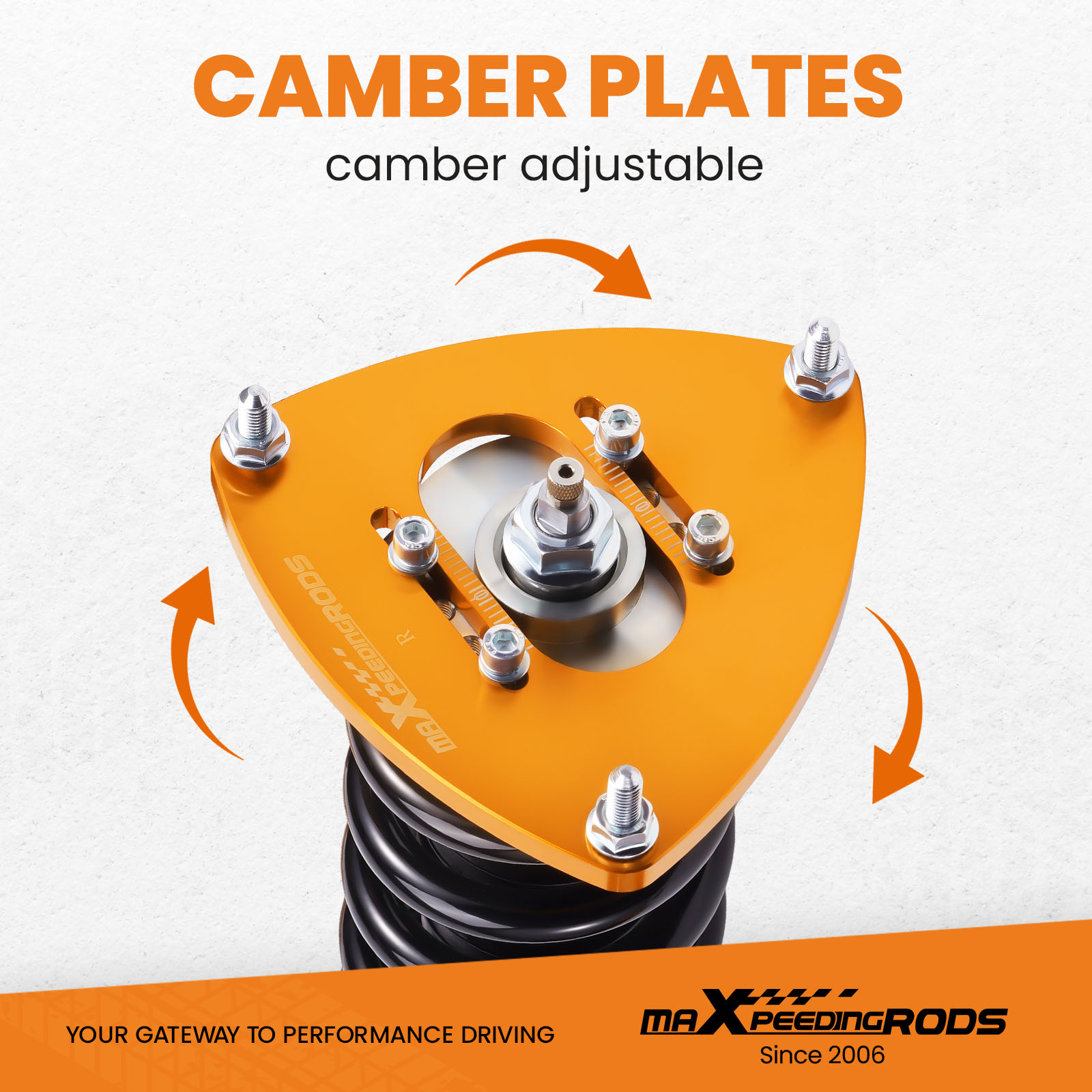 4. Adjustable Camber Plate and Pillow ball top mount for sharpening steering response. ( for some models)