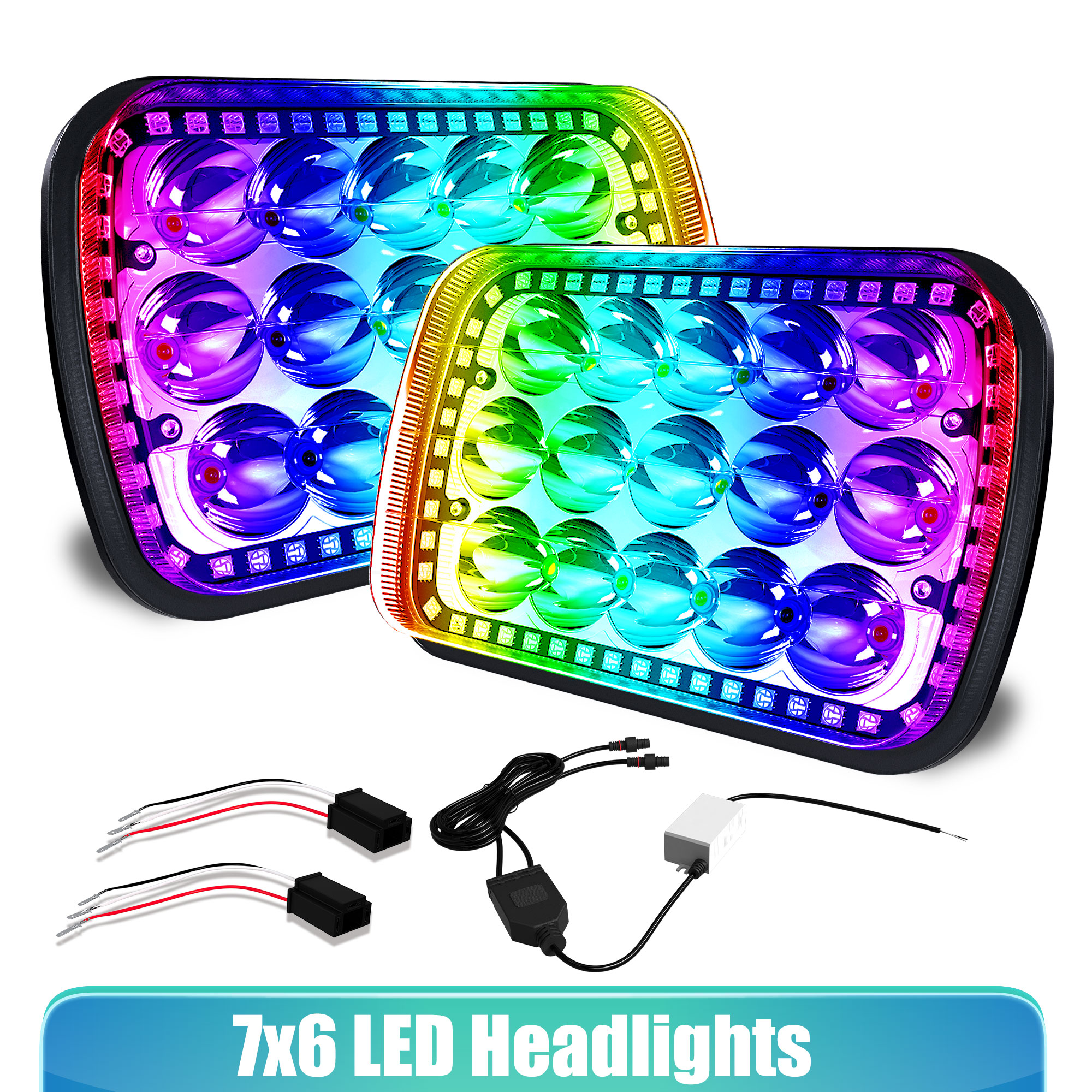 2PCS H6054 Led Headlights 7x6 5x7 Auto Head Lamp Replacement 2PCS Hi/Low Sealed Beam with RGB Halo Function Compatible with Jeep Wrangler YJ XJ Cherokee E250 Chevy Van Truck Toyota Mr2