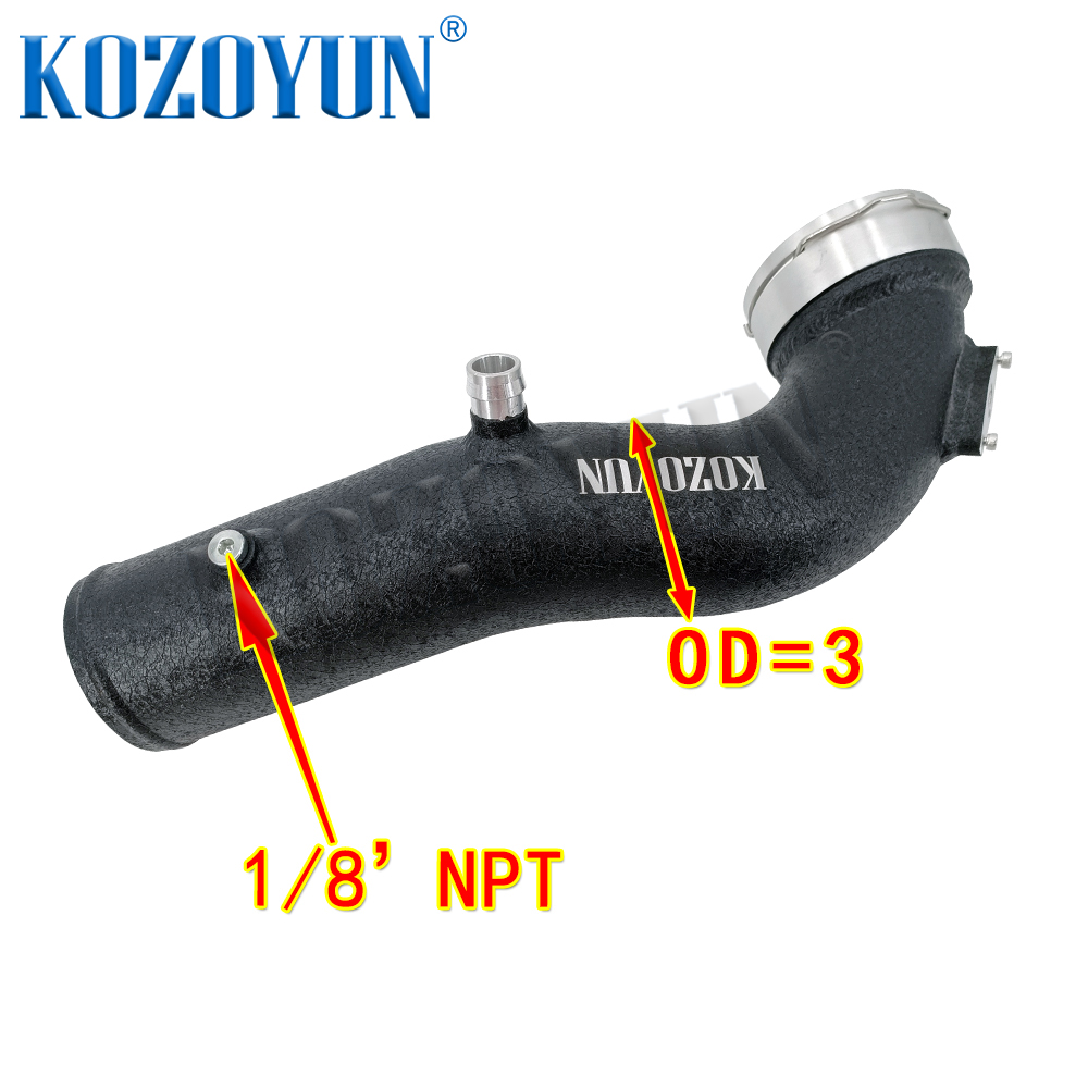The aluminum pipe replaces the brittle factory plastic pipe which can fail under increased boost pressure.