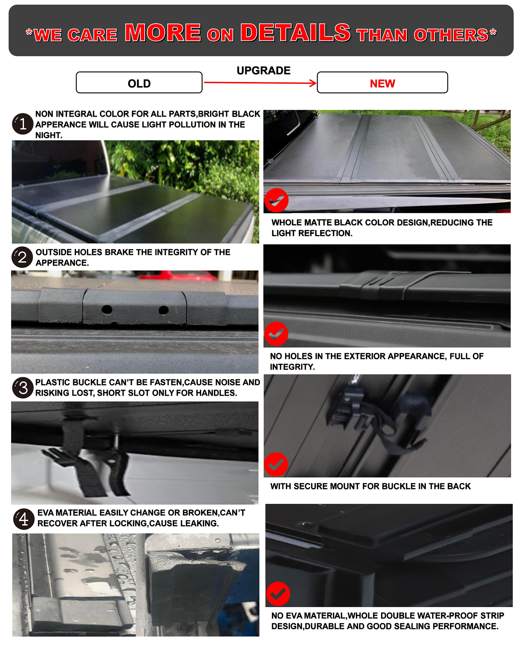*All of EPDM double seal strip design to instead of low quality EVA seal pads on the hinge connection, longer life and excellent performance on the water-resistent.Tailgate work smoothly with the cover.