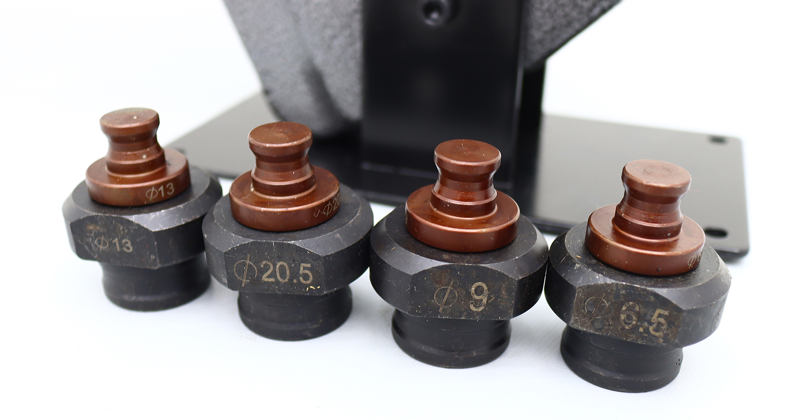 Depth:40mm (1.57inch) Machine size: 19.69"*7.68"*3.94"(500 * 195 *100mm) Shipping Weight:37 lbs Accessories dies:Φ6.5mm (0.26 inch), Φ9mm (0.35 inch), Φ13mm (0.51 inch), Φ17mm (0.67 inch), Φ20.5mm (0.81 inch) Voltage: 110V / 50Hz No-load power:1200W-1300W |