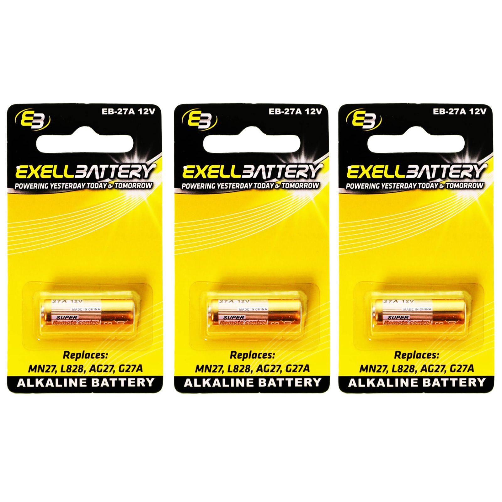 The Exell EB-27A Alkaline 12V Battery is commonly used to power Car Alarms Key Fobs, Burglar Alarm Remote Controls, Electronic Door Locks, and Garage Door Openers.