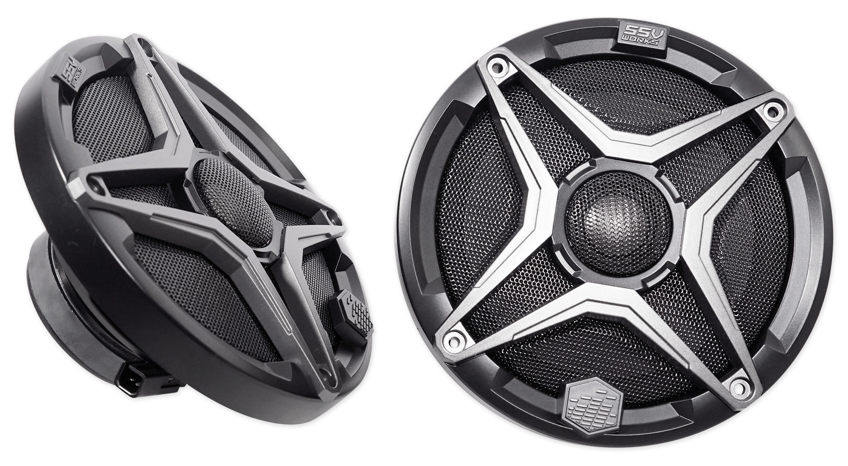 SSV Works’ new 6.5” Marine-Grade weatherproof speakers will transform the sound of your UTV’s stereo. Get louder, cleaner sound even in the dirt and mud. Engineered specifically for Powersports, the new WP-A6 WeatherProof speaker brings audiophile grade components to the outdoors. The 25mm Ti- tweeter creates crisp brilliant highs engineered to be heard outdoors, even in a helmet…over the motor…haulin’ down the trails. The grille mounted tweeter allows for peak cone travel creating maximum output while providing a low profile with optimal weatherproofing.