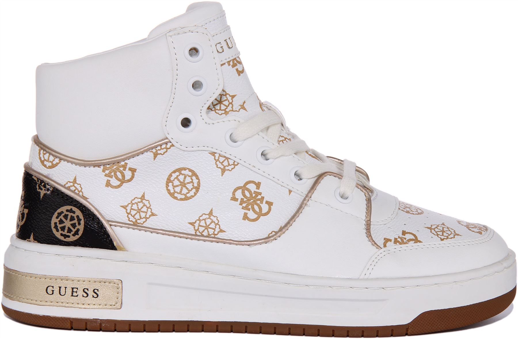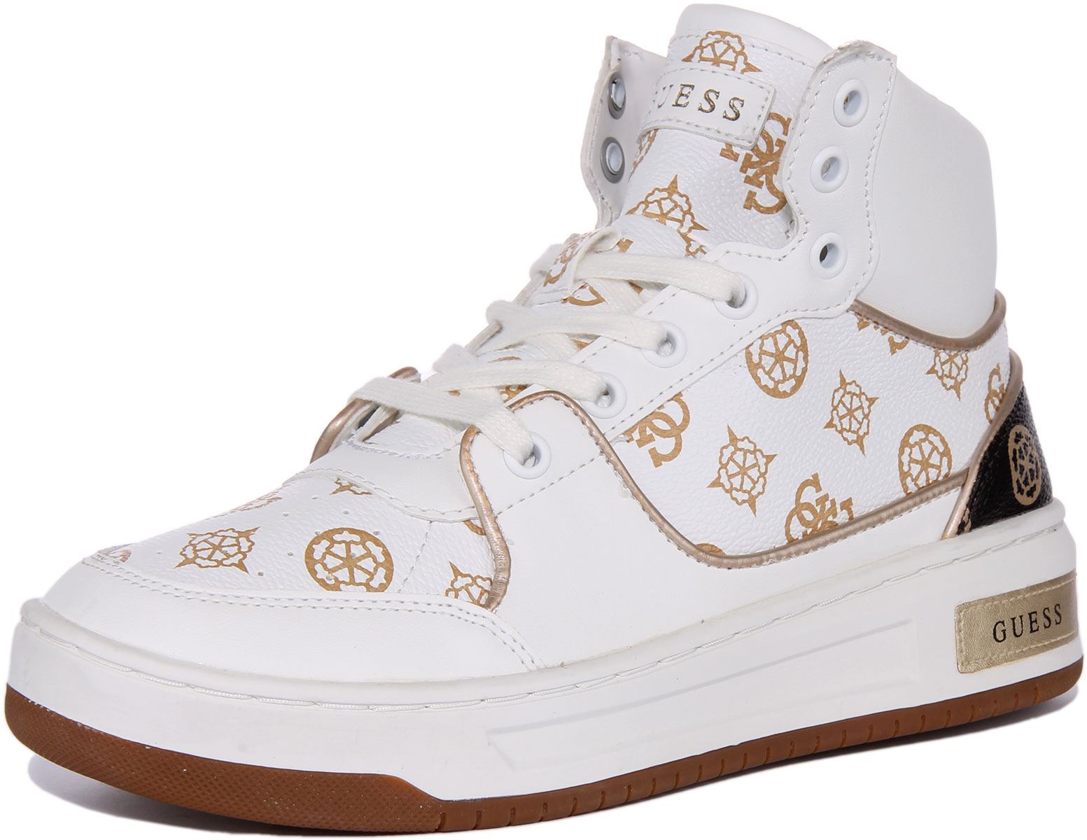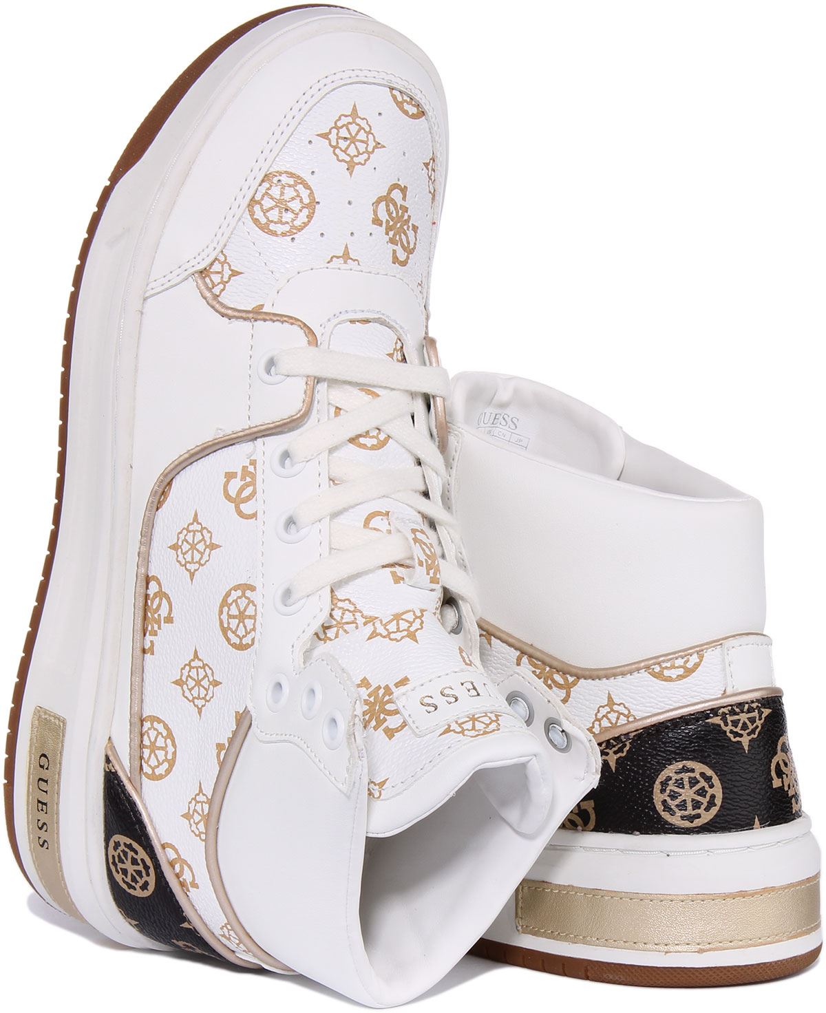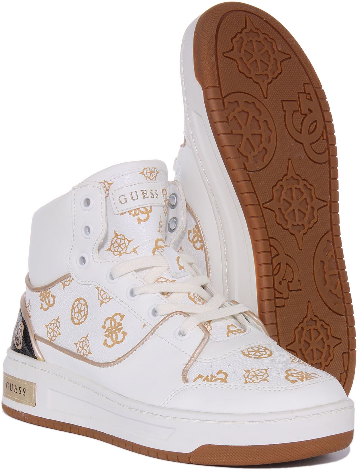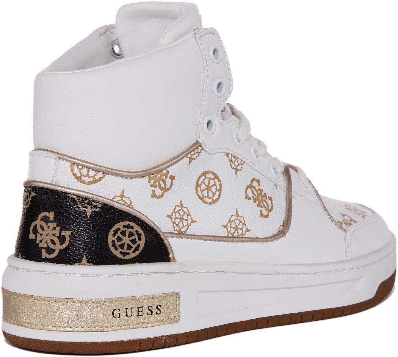 Guess Fl5Tulfal12 Tulia Women's Lace Up High Top Sneaker With 4G Peony Logo In White Gold