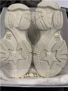 Two adjustable signed bands. Supple and lightweight textured rubber sole with engraved star, Christian Dior's lucky symbol.