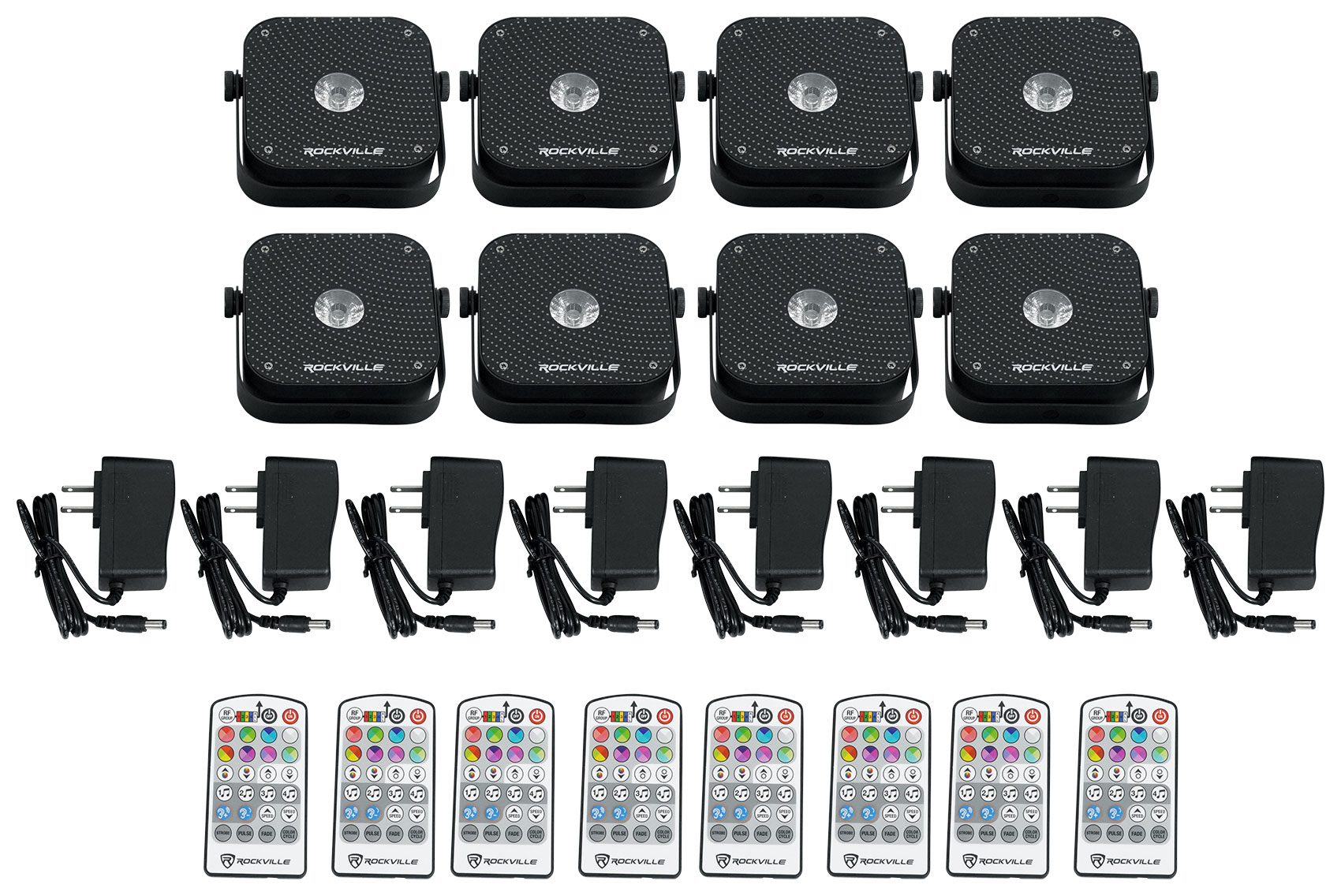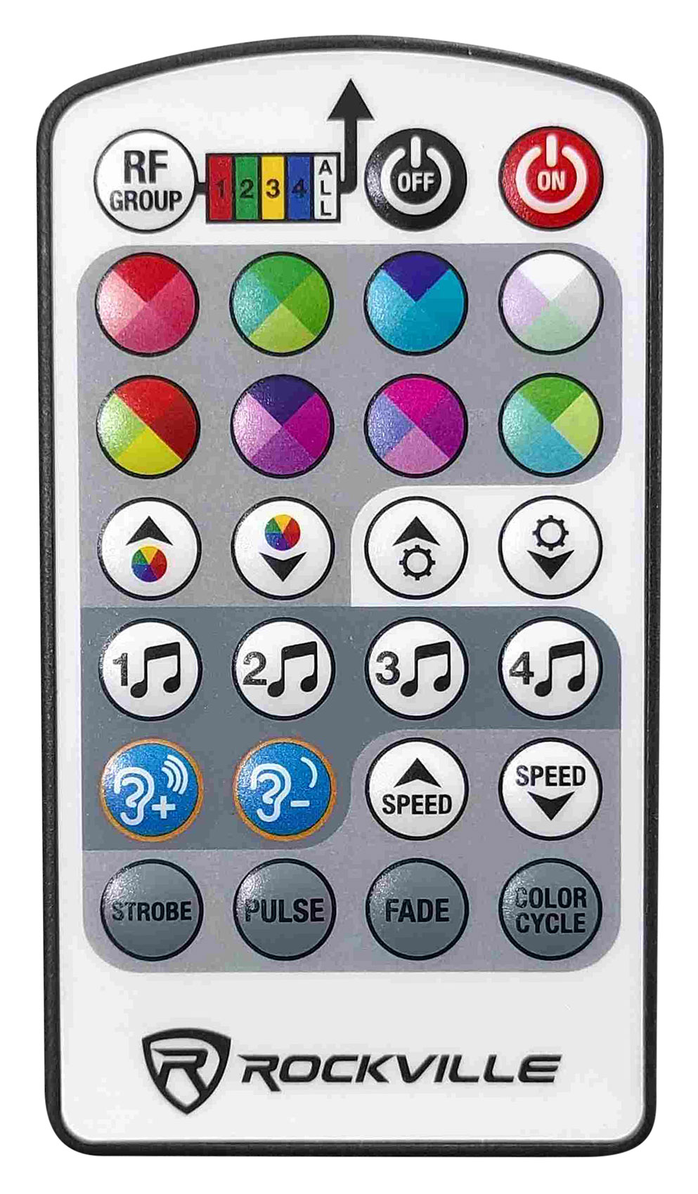 Each light has 4 RF channels. This means you can have one remote to control 4 groups of lights. For example, you can have 10 lights set to group A, 10 lights to group B, 4 lights to group C, and 2 lights on group D. From the remote you can go to group A and hit red. Those 10 lights will turn red. You can then go change group B to blue with one button. You can then put group C to sound mode 1 and group D to sound mode 4 (we have 4 sound modes). You also have the ability from the remote to control all 4 RF channels at the same time.