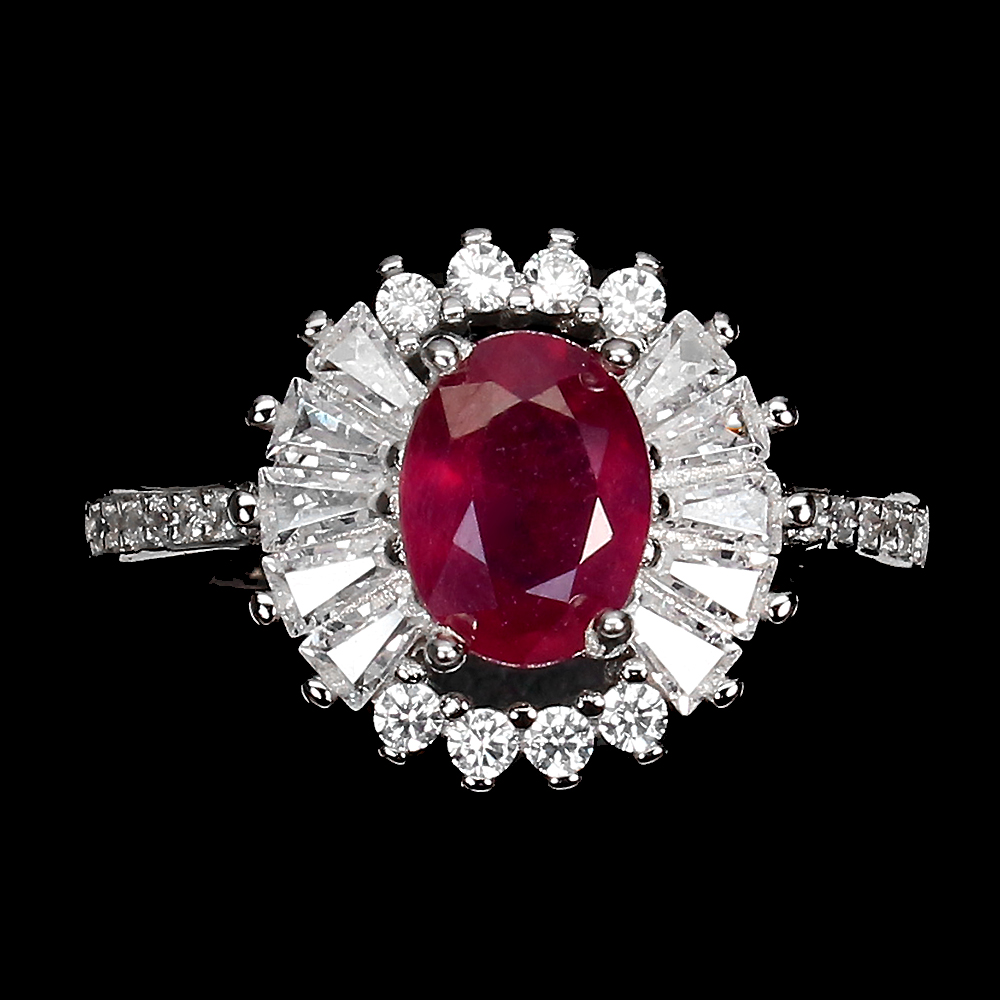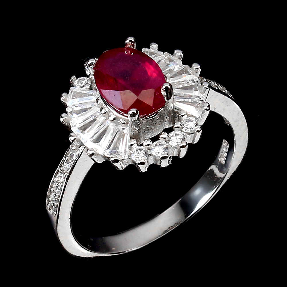 Heated Oval Red Ruby 8x6mm Simulated Cz 925 Sterling Silver Ring Size 7