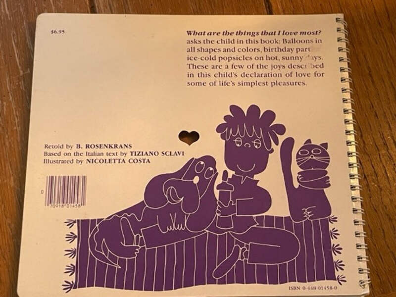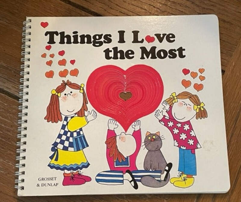 A bright red heart die-cut on each page frames some of the things children love most--balloons, birthday parties, puppies, and more