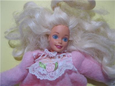 What a Cute Barbie doll. She comes with her nightgown and she has fuzzy slippers on her feet. She is In great played with condition-comes exactly as shown.