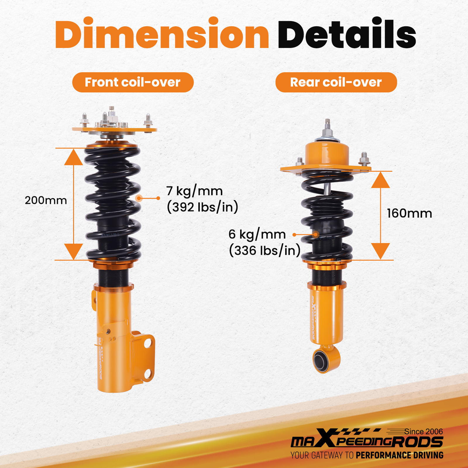 | Spring rate Front | 7 kg/mm (392 lbs/in) |