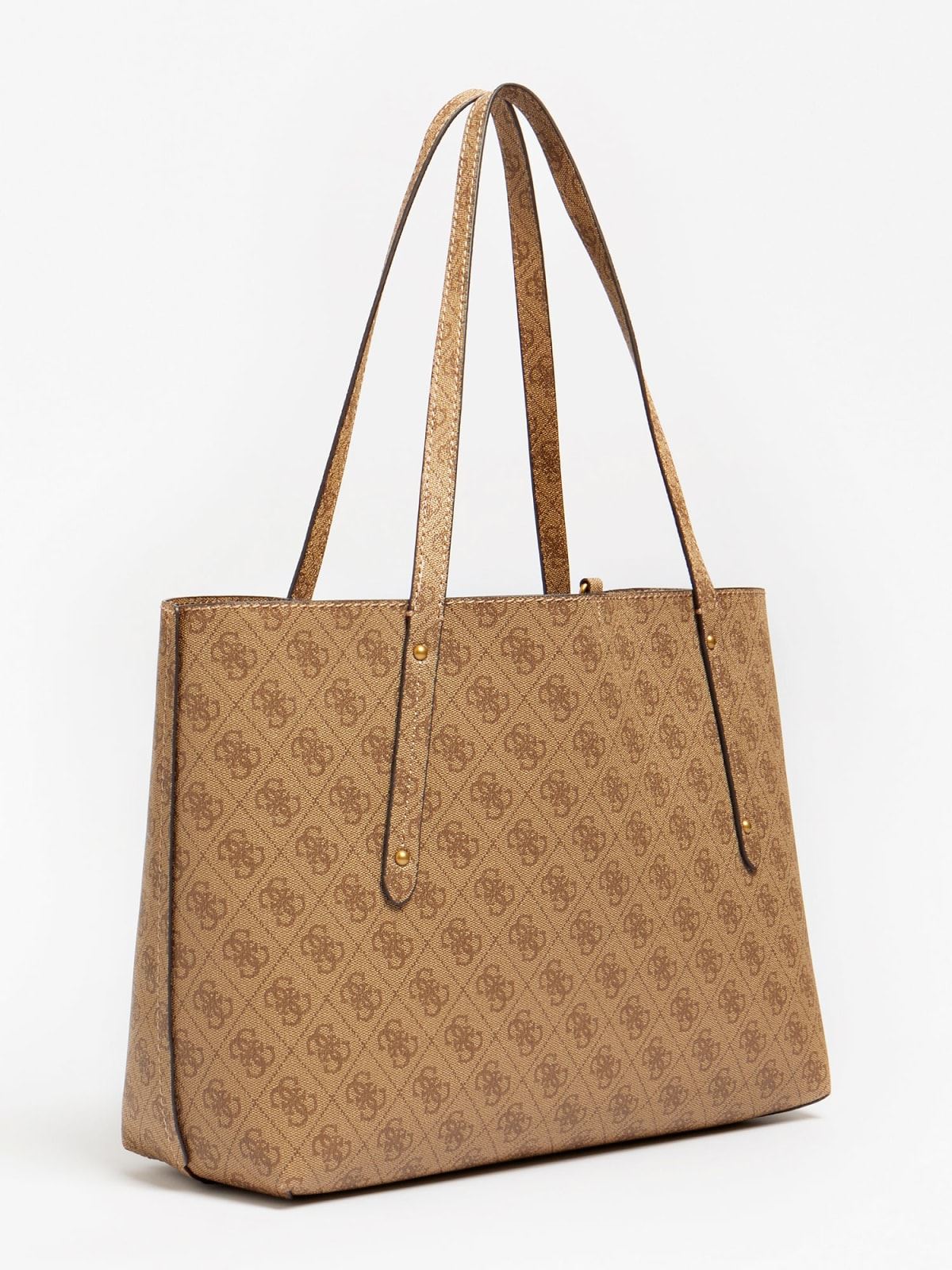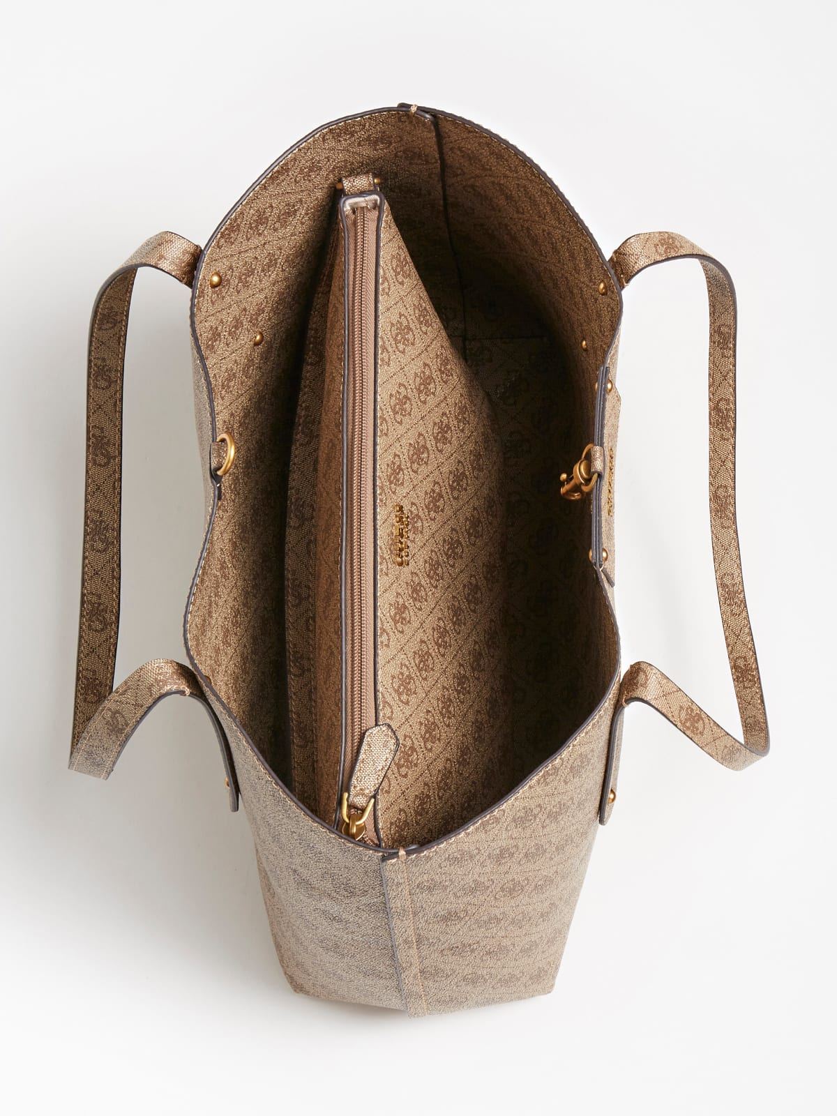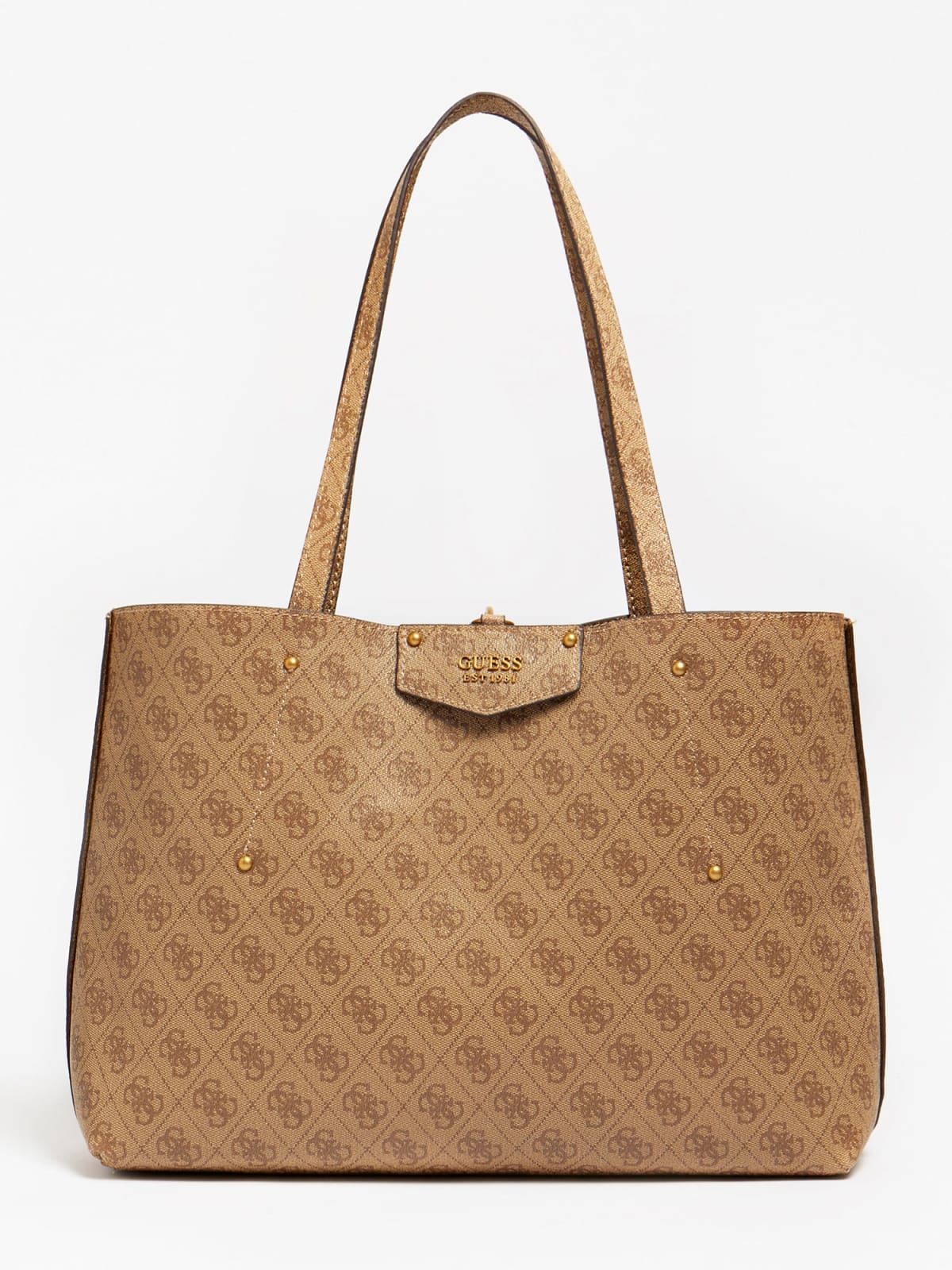 Keep your classic look with this stylish handbag from Guess. This ultra-modern bag helps you stay organized while looking your best. It features faux leather upper with 4G logo print and metal zip opening. It features twin top handle and removable pochette charm at the base of the handle. An elegant, practical and beautiful design to meet your daily personal needs.