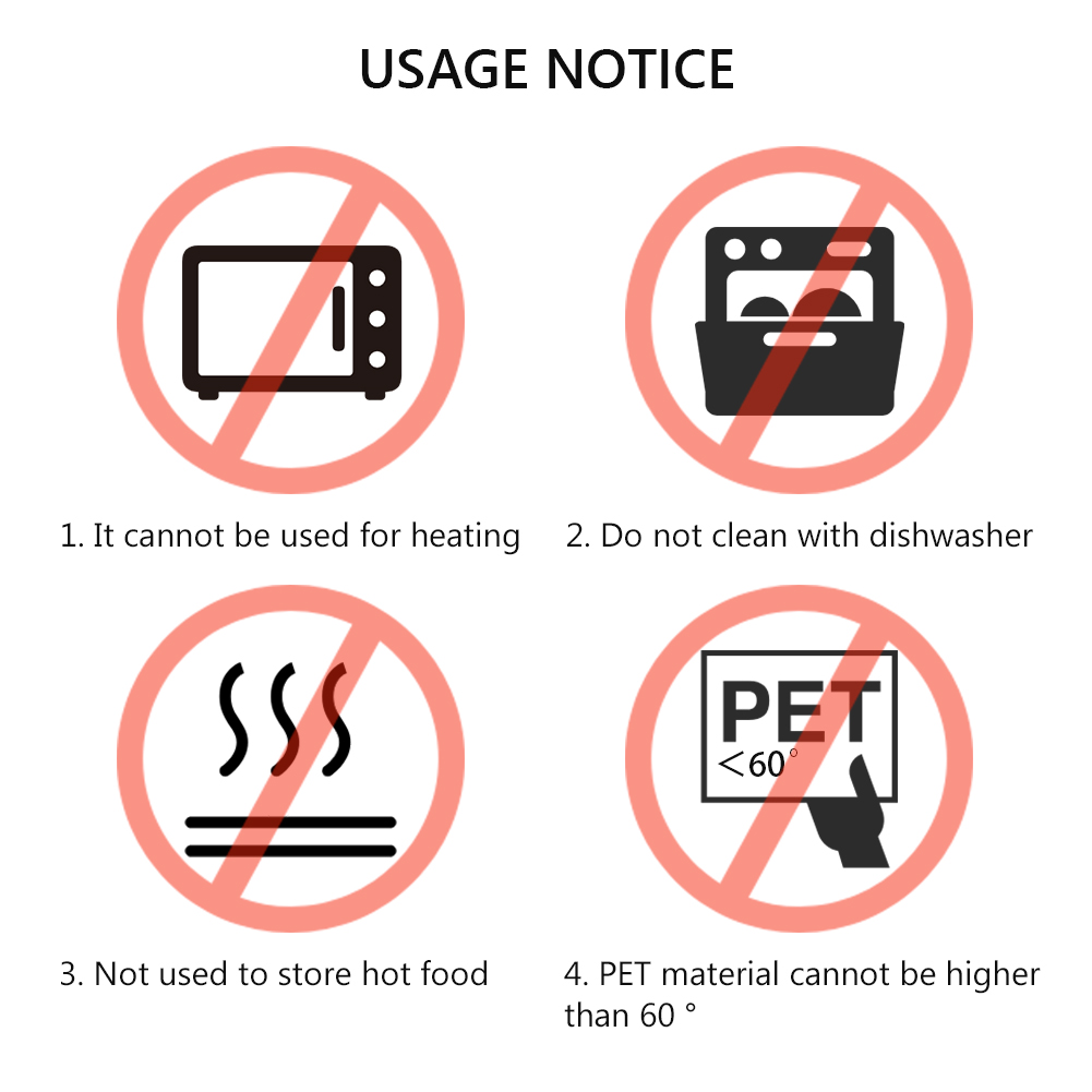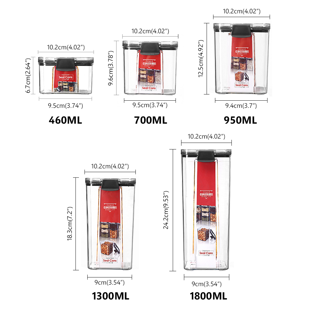 Features 100% Brand new! Stackable airtight food containers kitchen storage boxes jars canisters containers. Help organize your kitchen and pantry. No longer messy, you can get everything you want very quickly. With the stackable and space-saving design, these containers will make more efficient use of every inch of your kitchen pantry cabinets. Airtight containers & keep food fresh. The side-locking lids with silicone gasket make these storage containers airtight, and the top flips open easily. Airtight storage system will always keep your food dry and fresh. Food grade material. These pantry storage containers are made of durable plastic, BPA free. Clear containers make it convenient to see what’s inside. You can easily get what you want without opening every container. Space saving and versatile. Perfect for storing spaghetti, baking supplies, cereal, flour, sugar, oats, pasta, rice, coffee, tea, snacks, nuts and other dry goods. Specifications Material: Eco-friendly PET Color: Transparent Capacity: 460ml, 700ml, 950ml, 1300ml, 1800ml Size(approx.): Please check pictures for more details 460ml 10.2x9.5x6.7cm/4.0x3.7x2.6" 700ml 10.2x9.5x9.6cm/4.0x3.7x3.8" 950ml 10.2x9.4x12.5cm/4.0x3.7x4.9" 1300ml 10.2x9.0x18.3cm/4.0x3.5x7.2" 1800ml 10.2x9.0x24.2cm/4.0x3.5x9.5" Attentions Please allow tiny size deviations due to human measurement. Due to the effect of light and monitor's brightness, there may be slight differences between the color tone of the photo and the actual item! These storage containers cannot be used for heating, microwave ovens, ovens and dishwashers, and not used to store hot food, because PET materials cannot be higher than 60 degrees Celsius. Package Included 1/2/3/5 x Food Storage Containers
