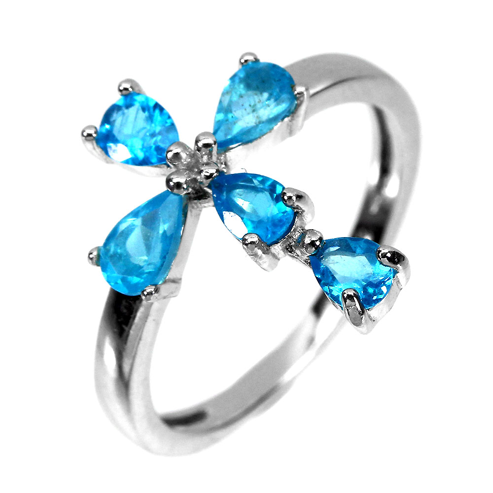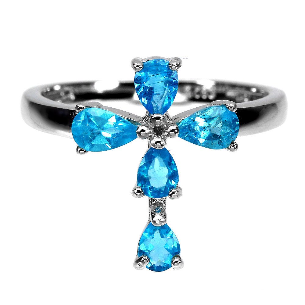 Unheated Pear Apatite 5x3mm 14K White Gold Plate 925 Sterling Silver Cross Ring