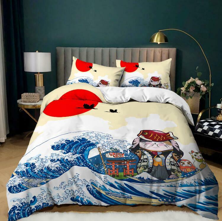2pcs 3Pcs Japanese Bed Doona Quilt Duvet Cover Set Single Double Queen King Size