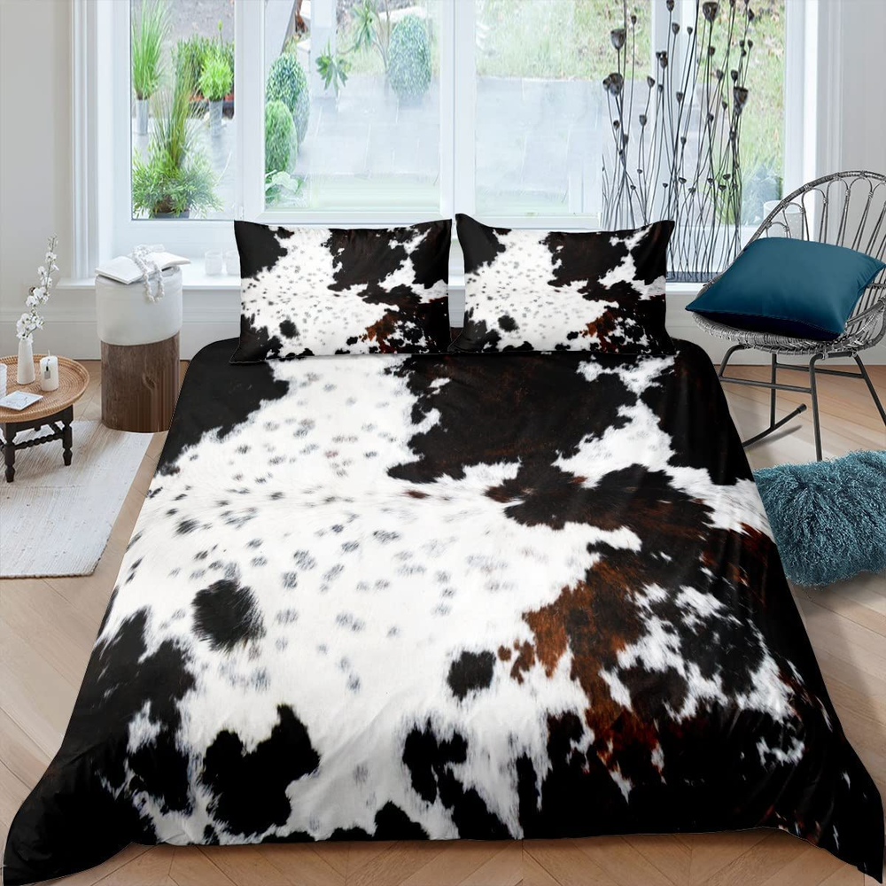 Cow Fur Print Duvet Comforter Cover King Size White Cowhide Bedding Set 3Pcs