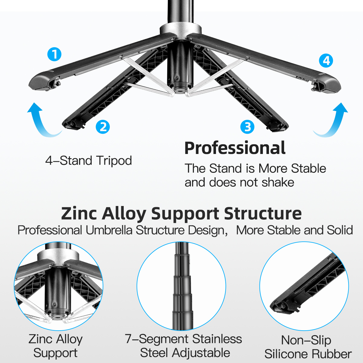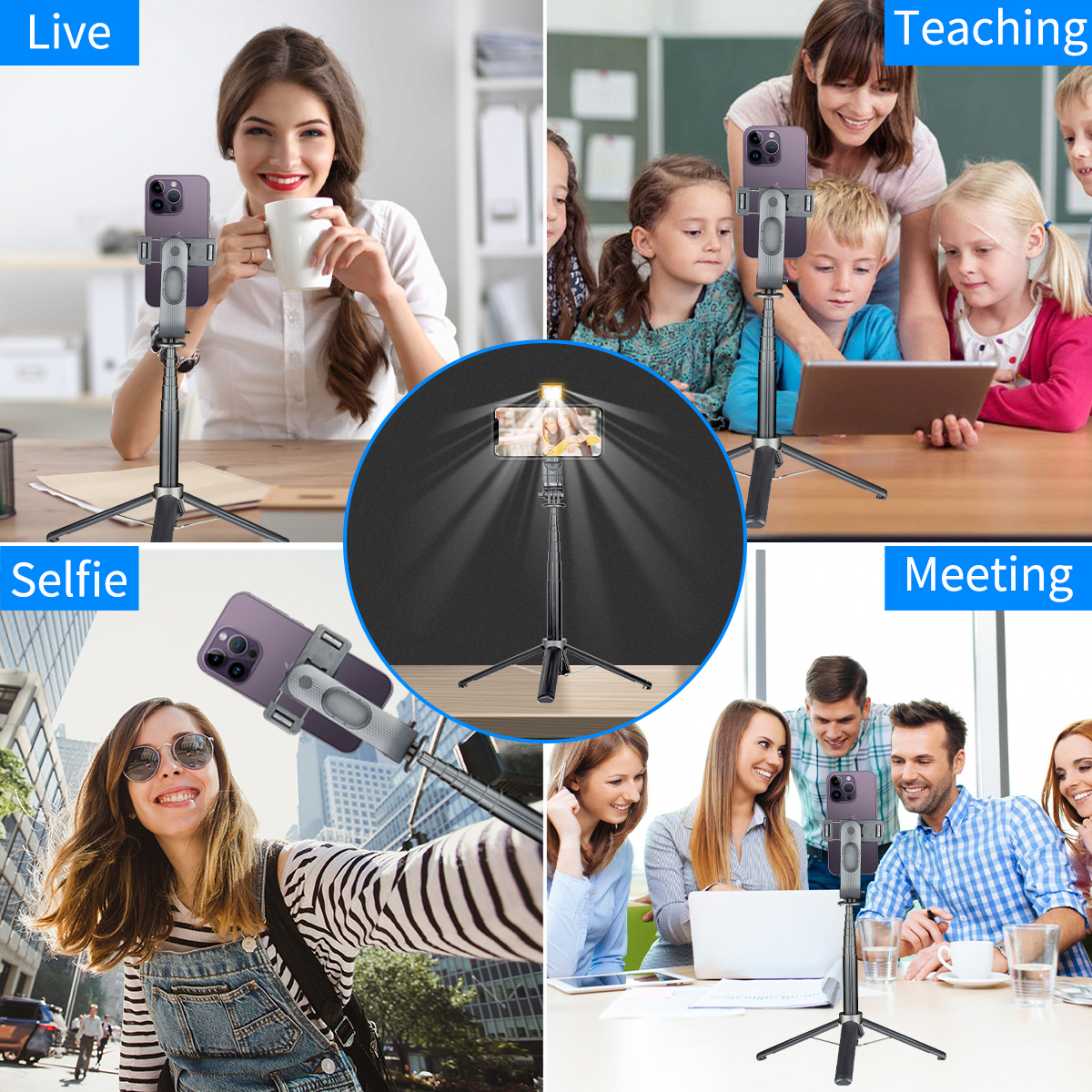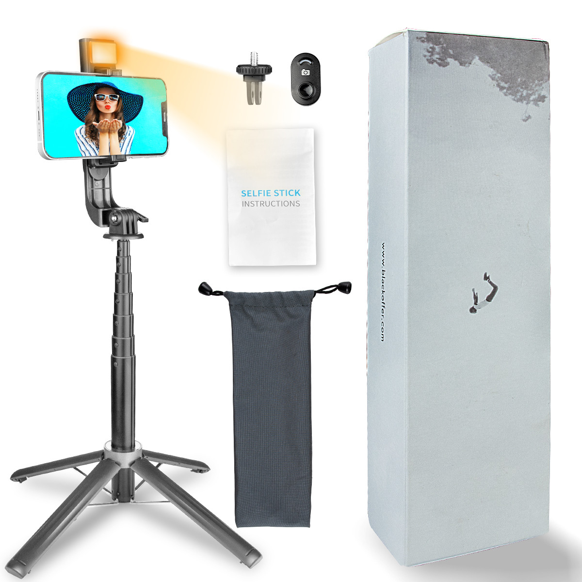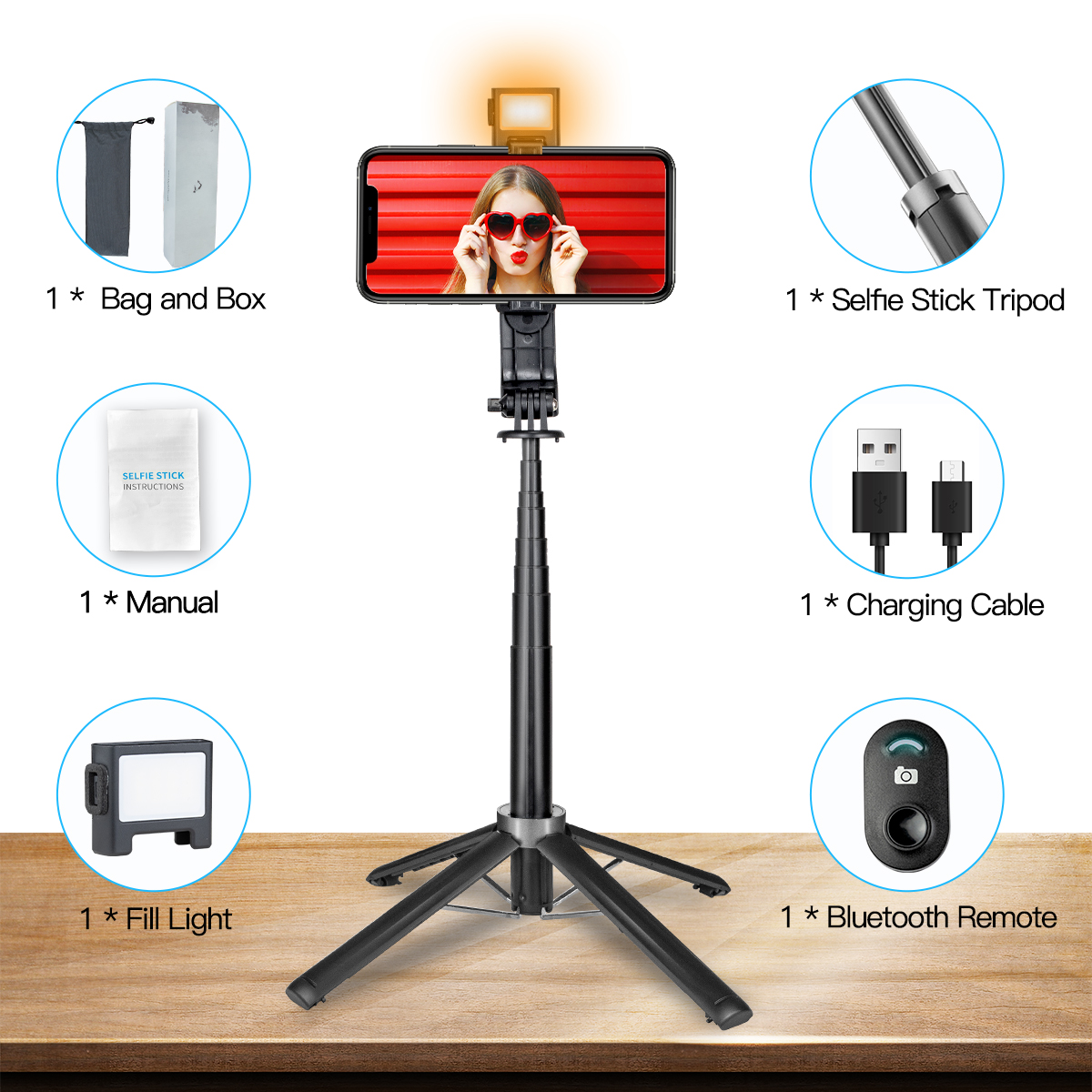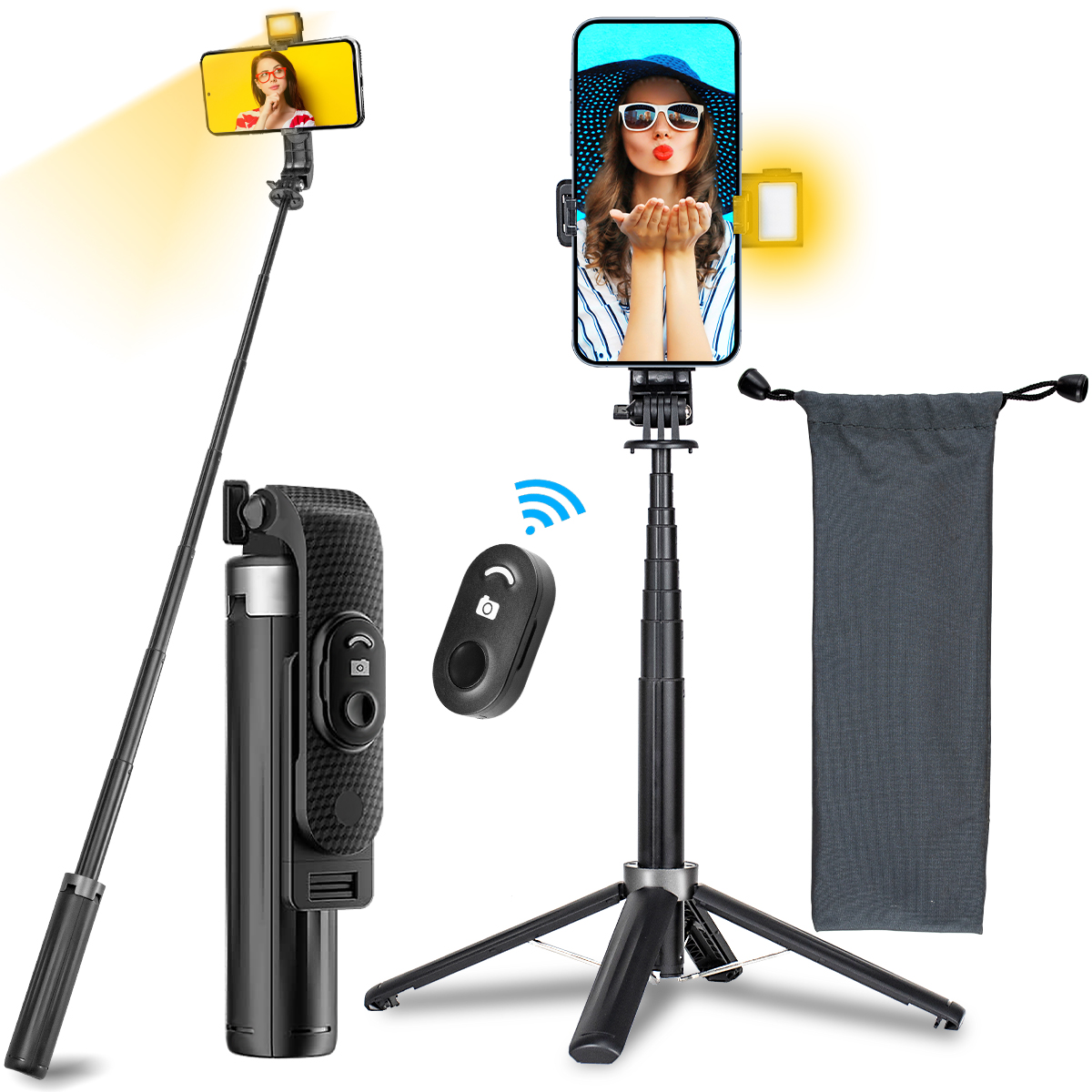 Bluetooth Aluminum Quadrupod Selfie Stick 39.4inch with 1 Fill Light