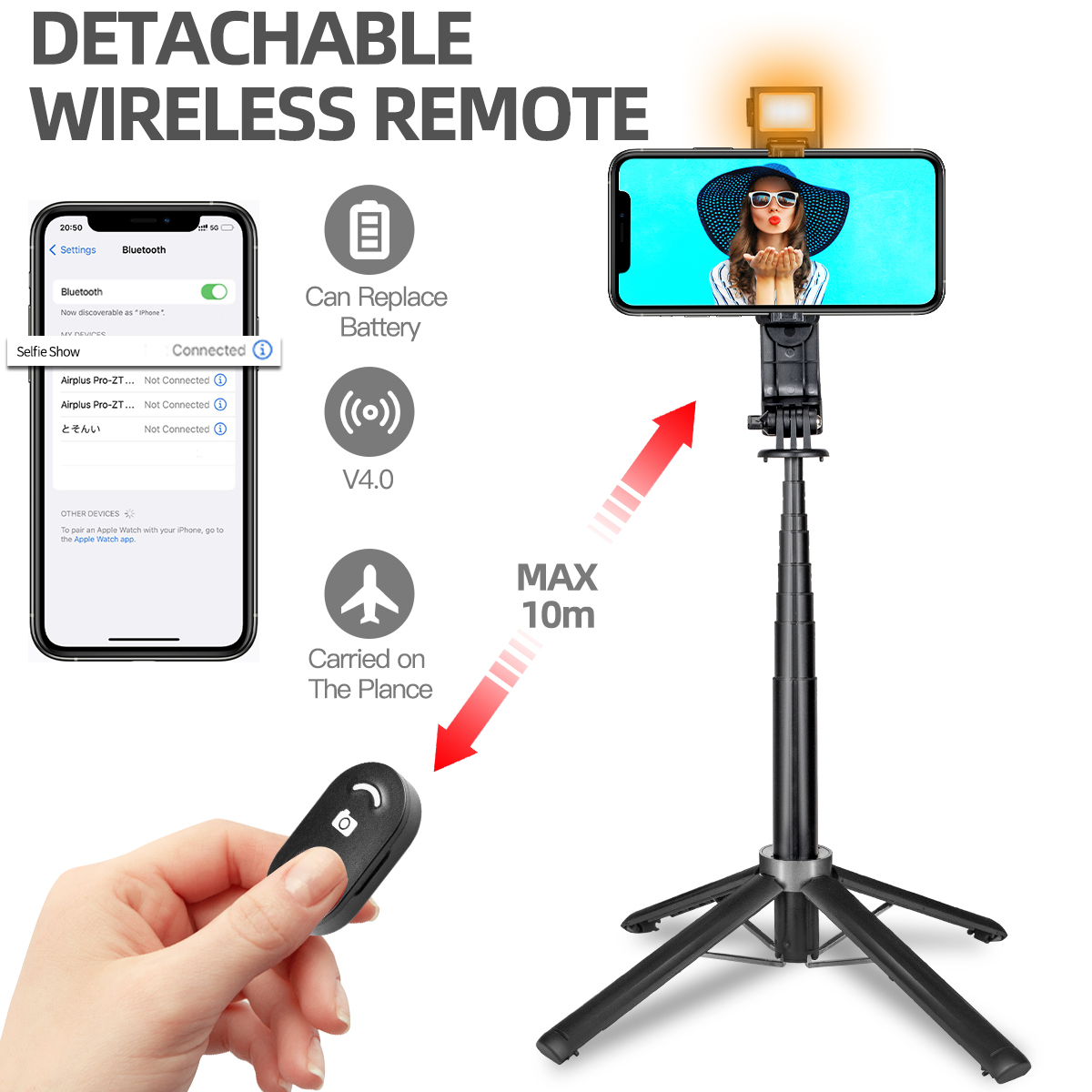 Extendable length & Wireless Bluetooth Remote