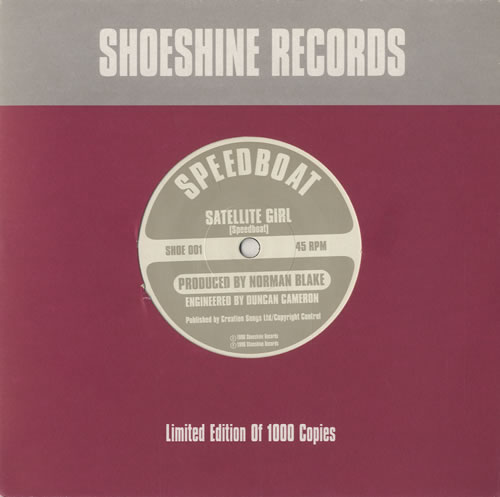 | DESCRIPTION: | SPEEDBOAT Satellite Girl (Limited edition 1996 UK 7"" vinyl single backed with Speedboat die-cut company sleeve SHOE001)