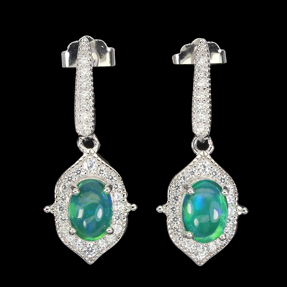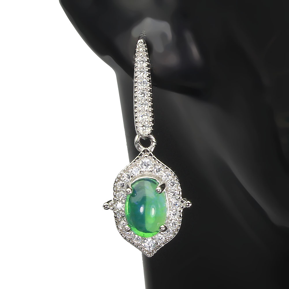 Clarity Enhanced Green Fire Opal 7x5mm Simulated Cz 925 Sterling Silver Earrings