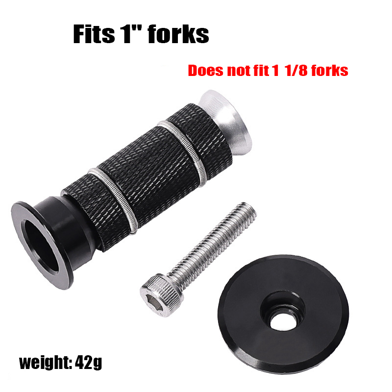Headset Top Cap & Fork Expander Bung 1 " (Does not fit 1 1/8" fork 28.6mm) Replaces conventional star nut & top cap, a must for carbon steerers. Fits forks with steerer internal diameter of 19-21mm ( 1" steerers diameter 25.4mm ). Conventional star nuts will scratch the inside of carbon fork steerers which can cause catastrophic failure. Expander Bung. eliminating the risk of damage and providing added support to the fragile top edge of the steerer. weigh aprox 42g