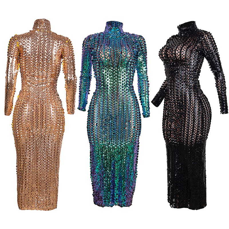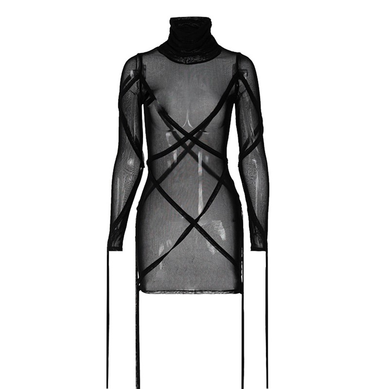 Transparentes Mesh-Patchwork im Taillenumfang, stilvolles, unregelmäßiges Schulterumfang Design.