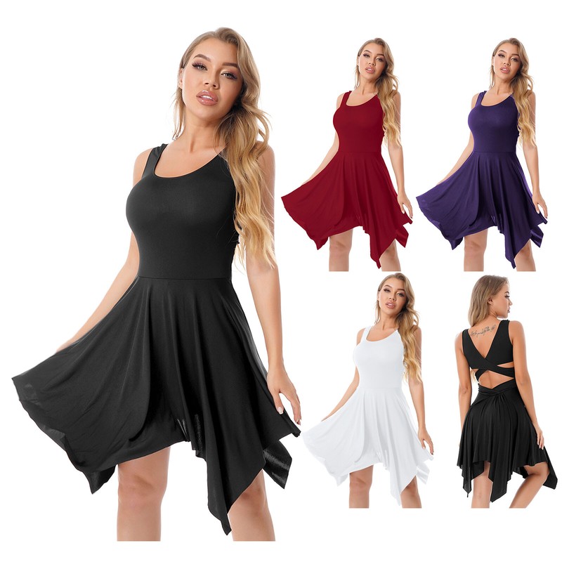 Ärmelloses Tanzkleid, asymmetrischer Saum, mit herausnehmbaren Pads.