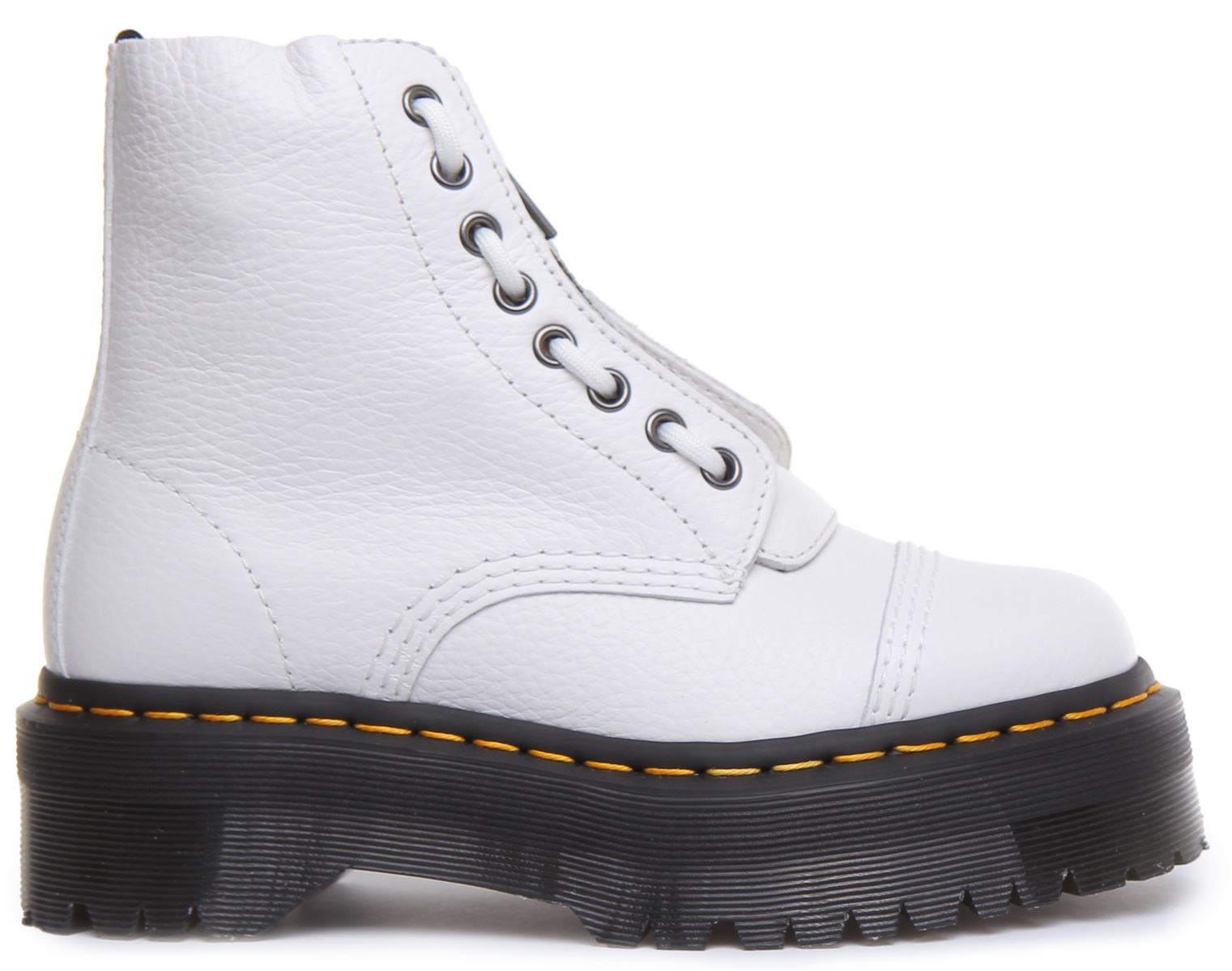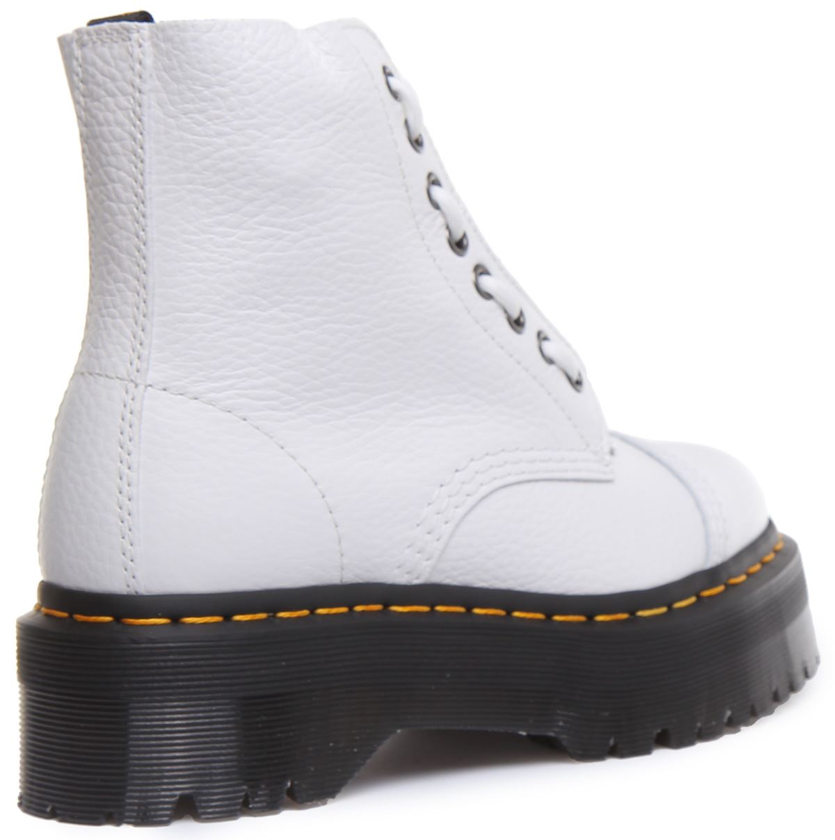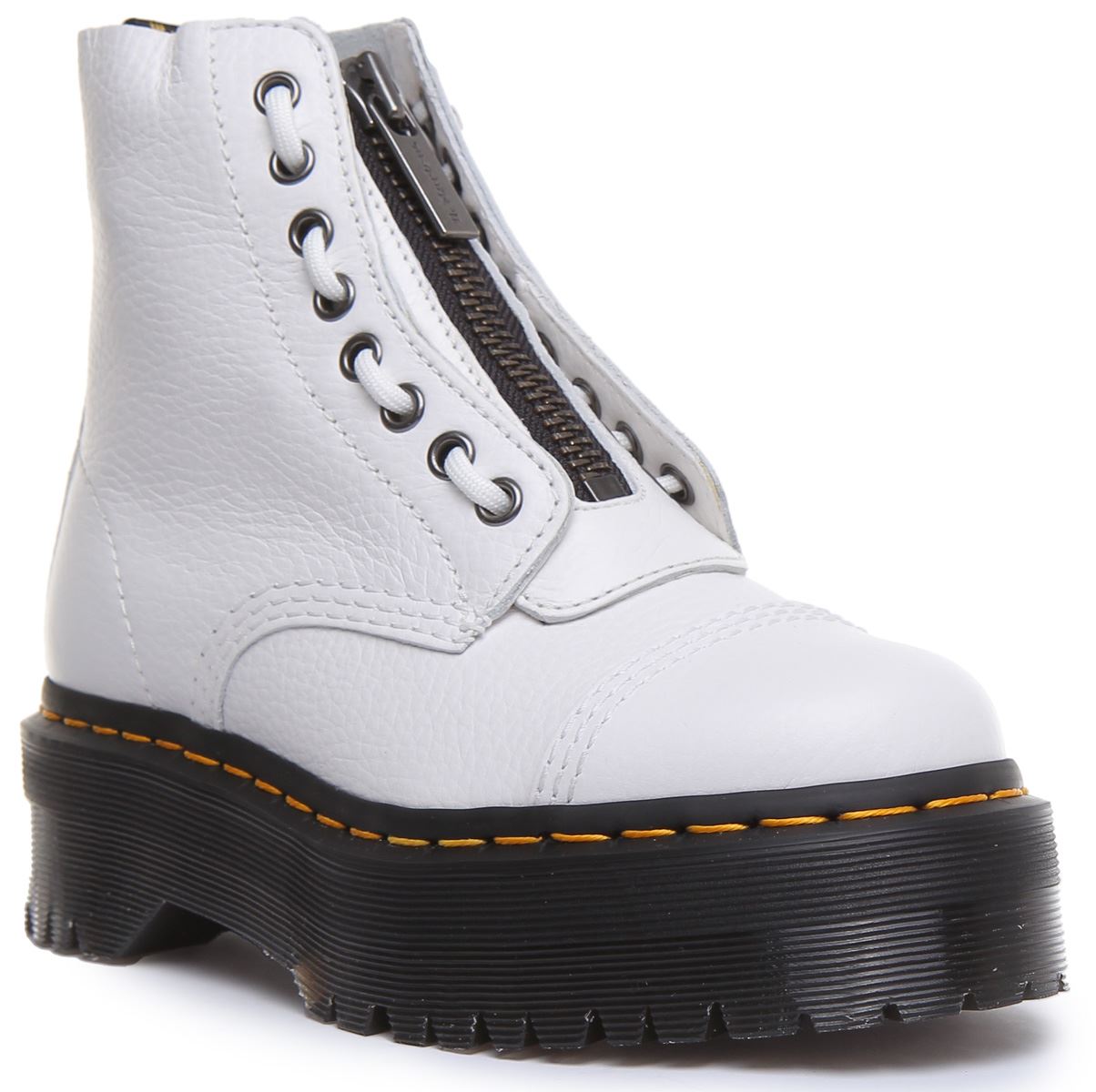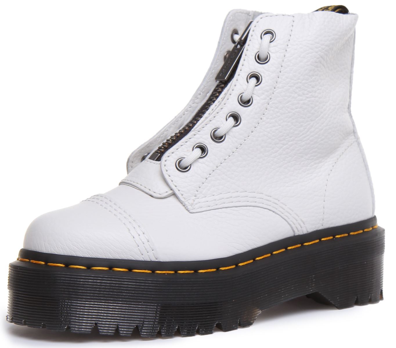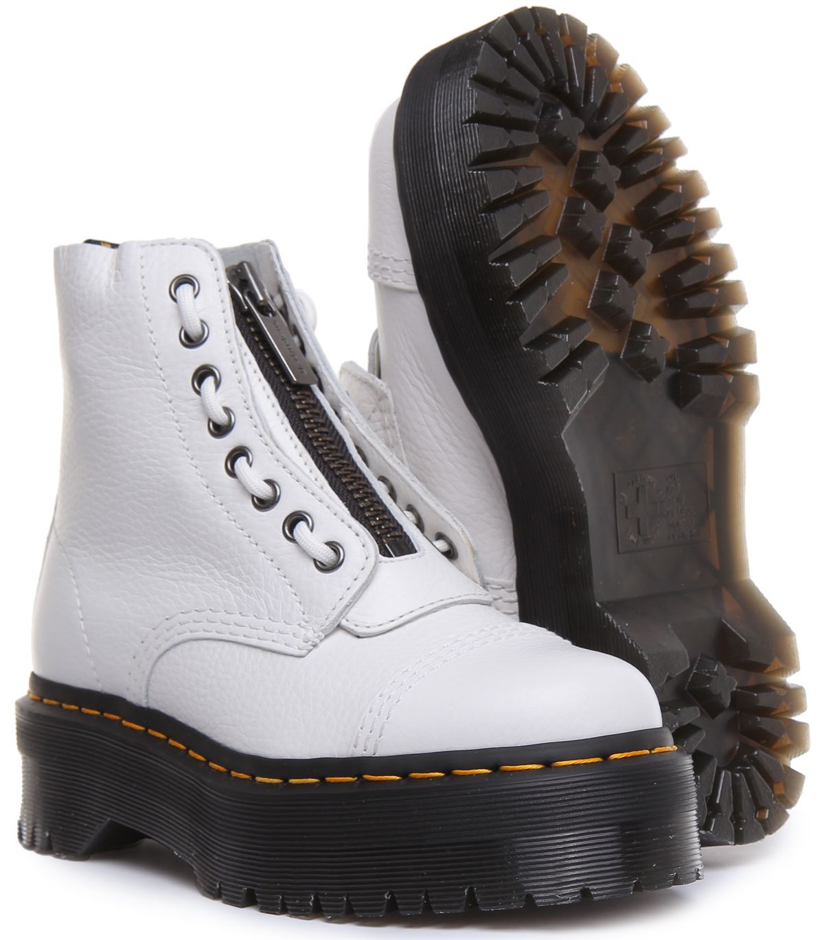 Crafted from hardwearing pebbled leather, these boots feature two ways to fasten laces and a zipper plus puritan stitching on the toe cap and a chunky platform sole. They're built on the rebelliously comfortable Dr Martens Airwair air cushioned sole which is slip resistant with superior abrasion and is oil and fat resistant. Classic Doc's DNA is in full effect with visible stitching, grooved sides and a heel loop.
