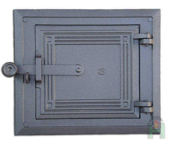 Solid cast iron oven door. Painted with black heat-resistant paint.