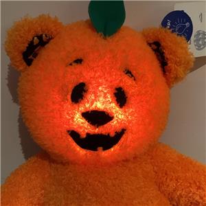 this is the cutest bear made of orange soft fur to look like a pumpkin & his face glows when you press his paw - now sold out & HTF