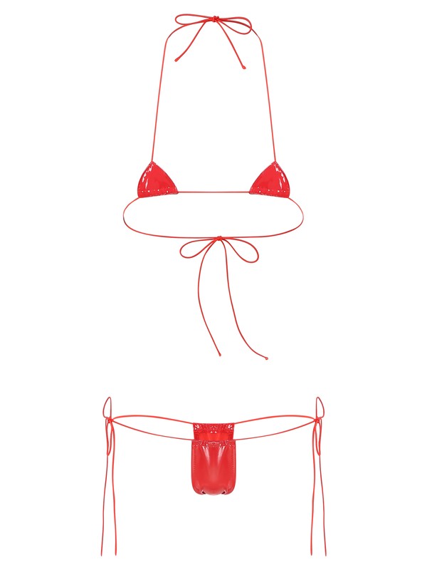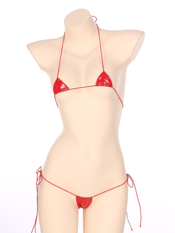 This glossy patent leather bikini set, mini coverage, highlight you body curve and make you more attractive.