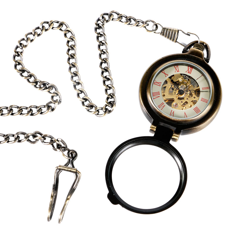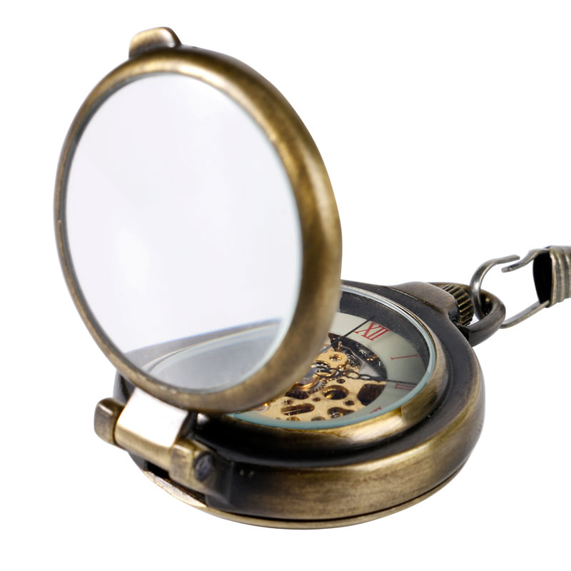Product Features: Transparent Skeleton Half Hunter Design Movement: Hand Winding Mechanical Diameter: About 4.1 cm Thickness: About 1.7 cm Total Length of Chain: About 30cm Package Content: 1 x Pocket Watch 1 x Chain