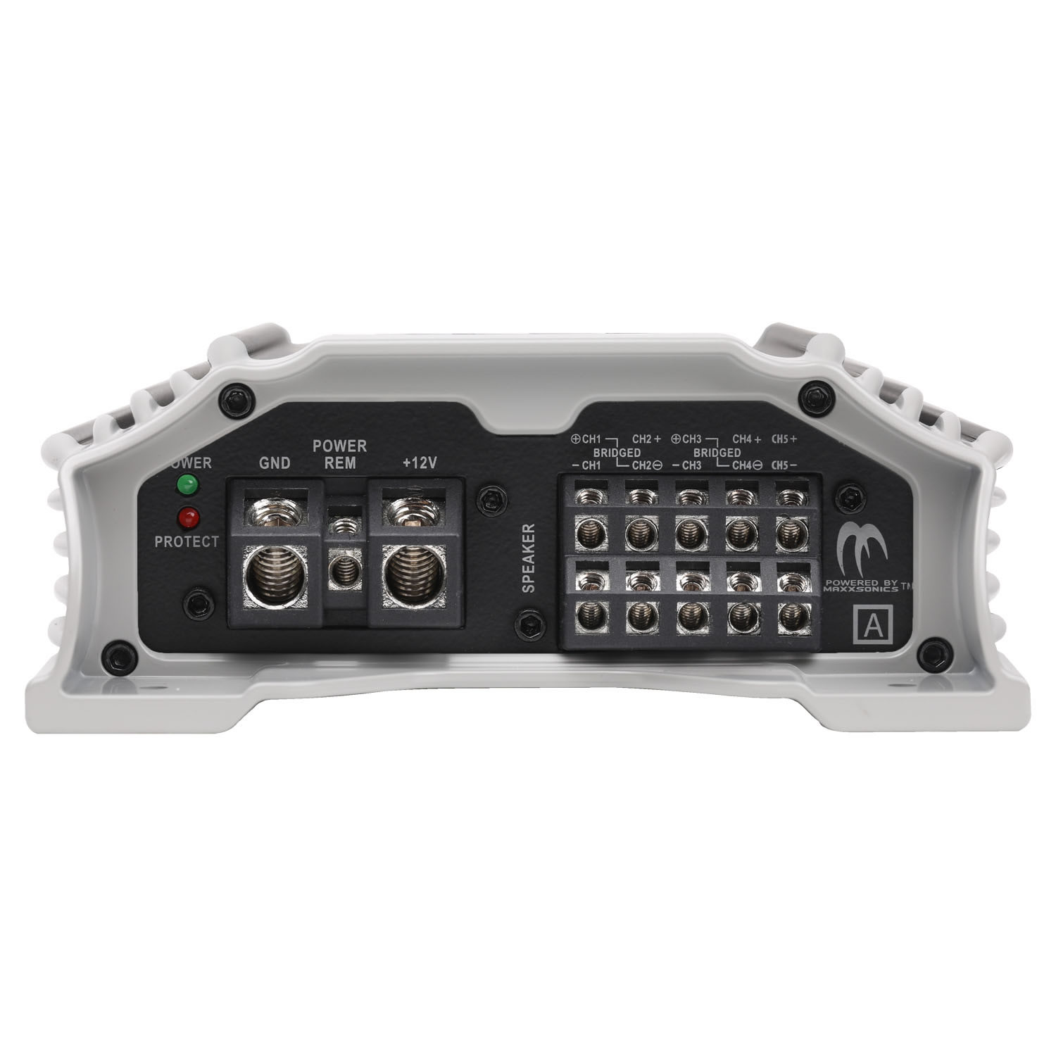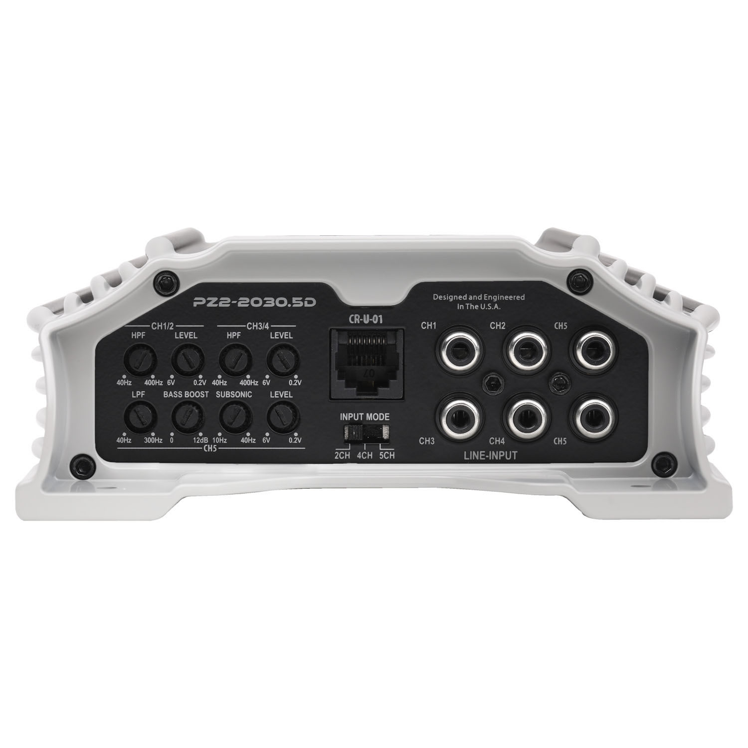 POWERZONE five channel amplifier highlighted with aggressive heatsink elements feature high level inputs utilizing SPEED-FET output devices and QTD Technology produces 2000 watts of power in a five channel application. Bass remote is included.