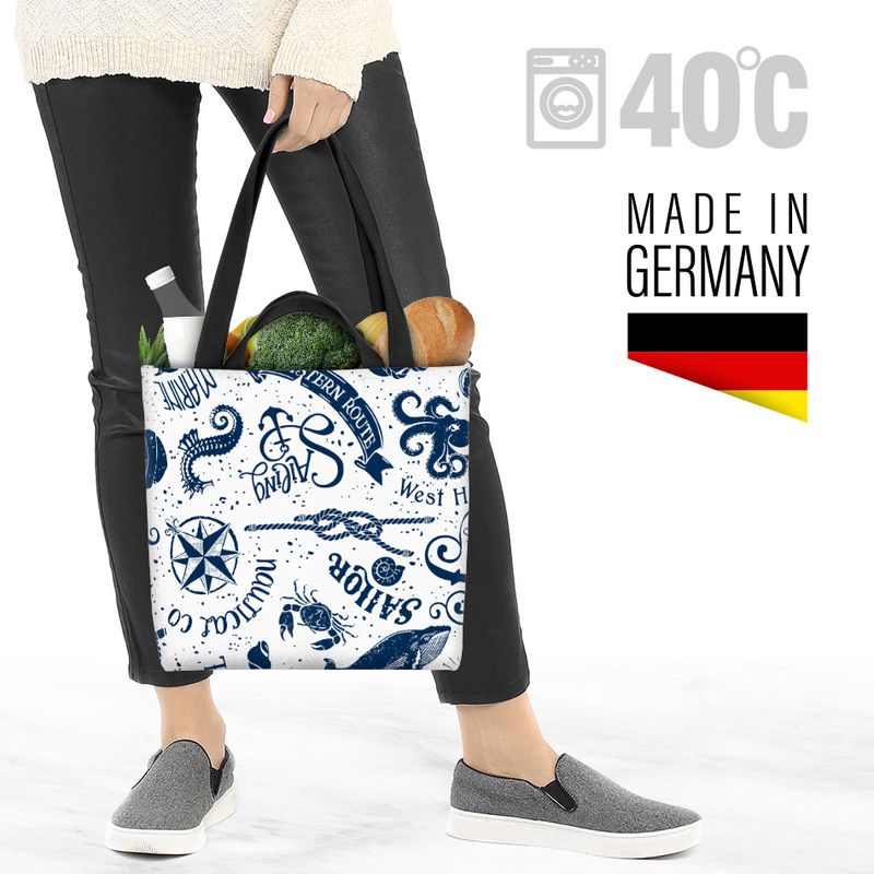 La borsa stampata su entrambi i lati è cucita e prodotta per voi in Germania nella nostra produzione propria.