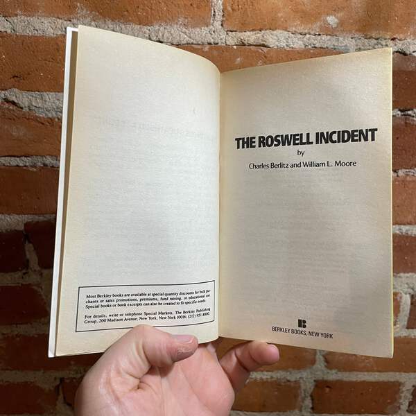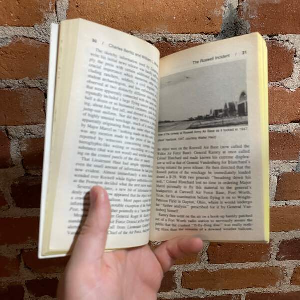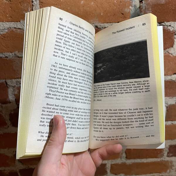 Blurb: βThe Roswell Incident was the most important UFO encounter of our century. But the facts about the incident are still being hidden from the American public. This groundbreaking book not only explores every aspect of the mysterious UFO crash near Roswell, New Mexico, but also probes the bizarre government cover-up that began within hours of the discovery and has continued right up to the present day.β