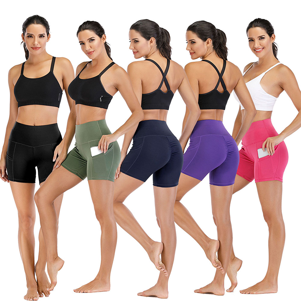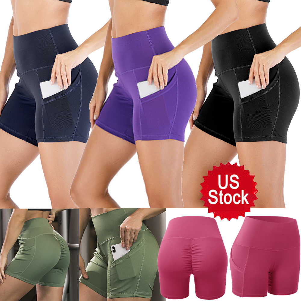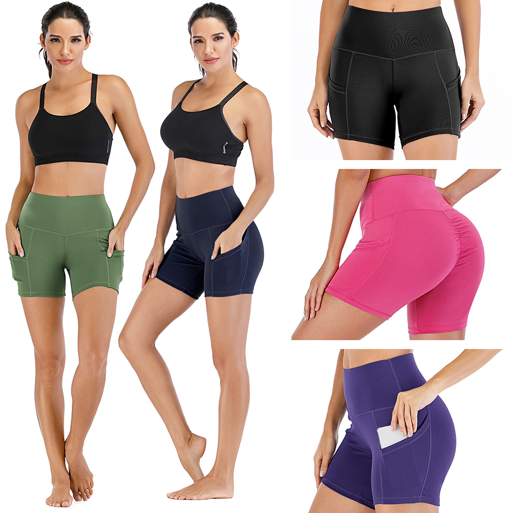 Women High Waist Fitness Biker Body Shorts Sports Yoga Pants with Pocket XS-3XL