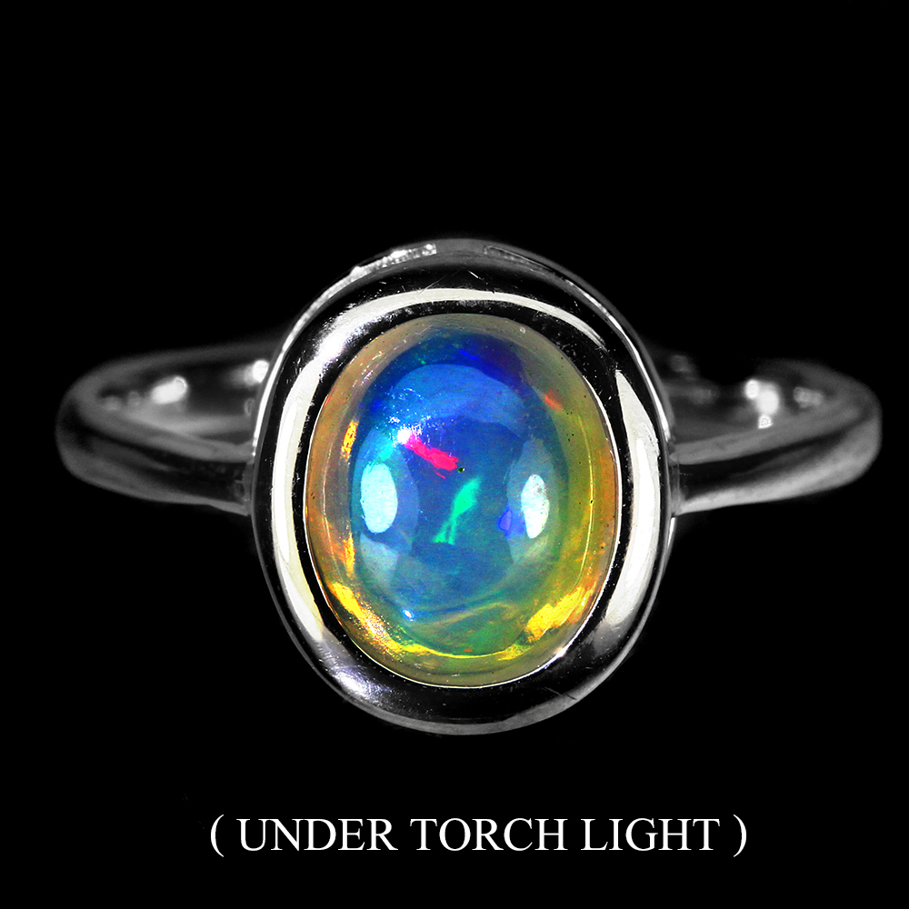 Unheated Oval Fire Opal Rainbow Full Flash 10x8mm 925 Sterling Silver Ring 8.5