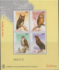 TOP431 MACAU 1993 BIRDS OF PREY/PEREGRINE FALCON/GOLDEN EAGLE/OWL SSC499-02b MNH