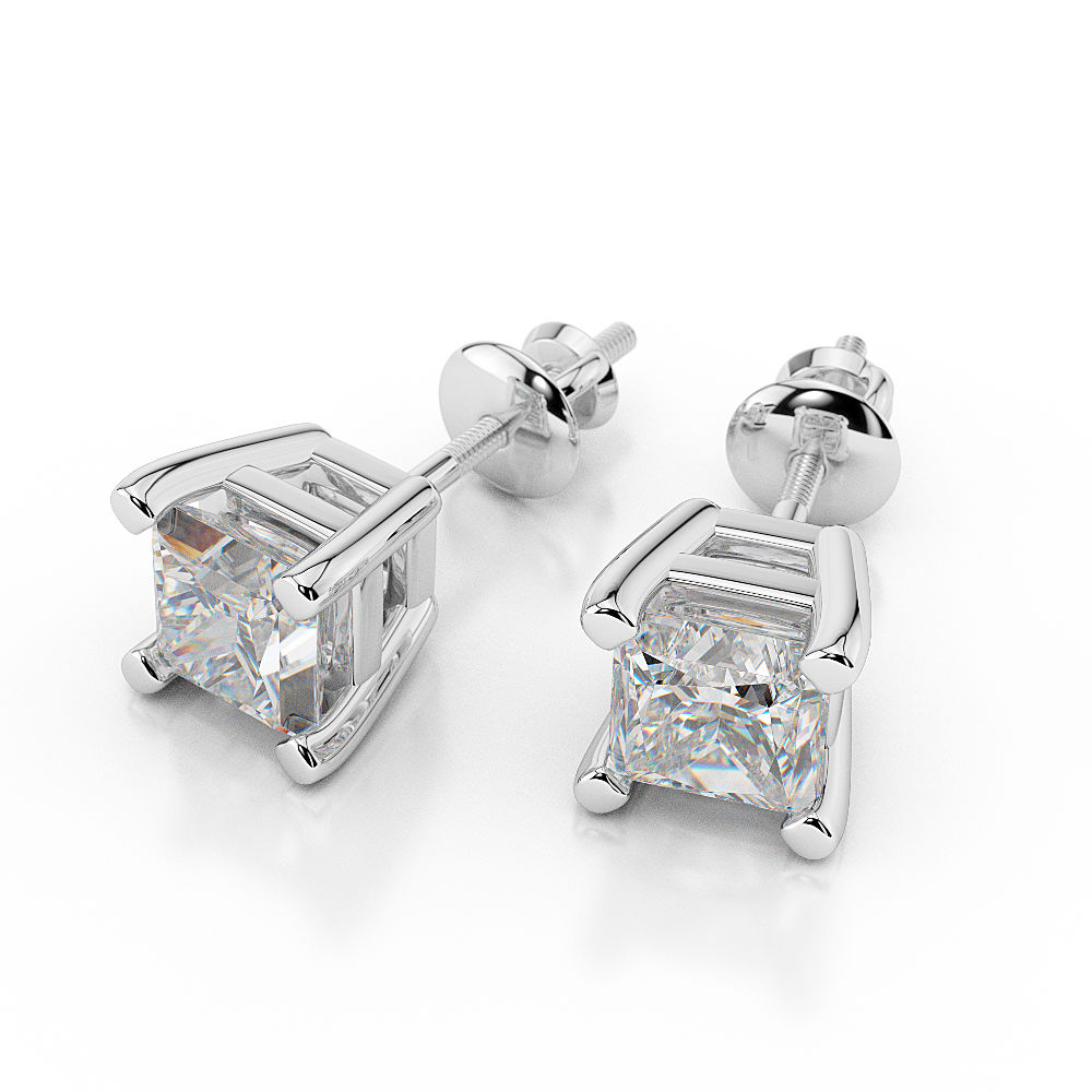 2 Carat Solitaire Diamond Stud Earrings Princess Cut D/VS1 18K Yellow Gold