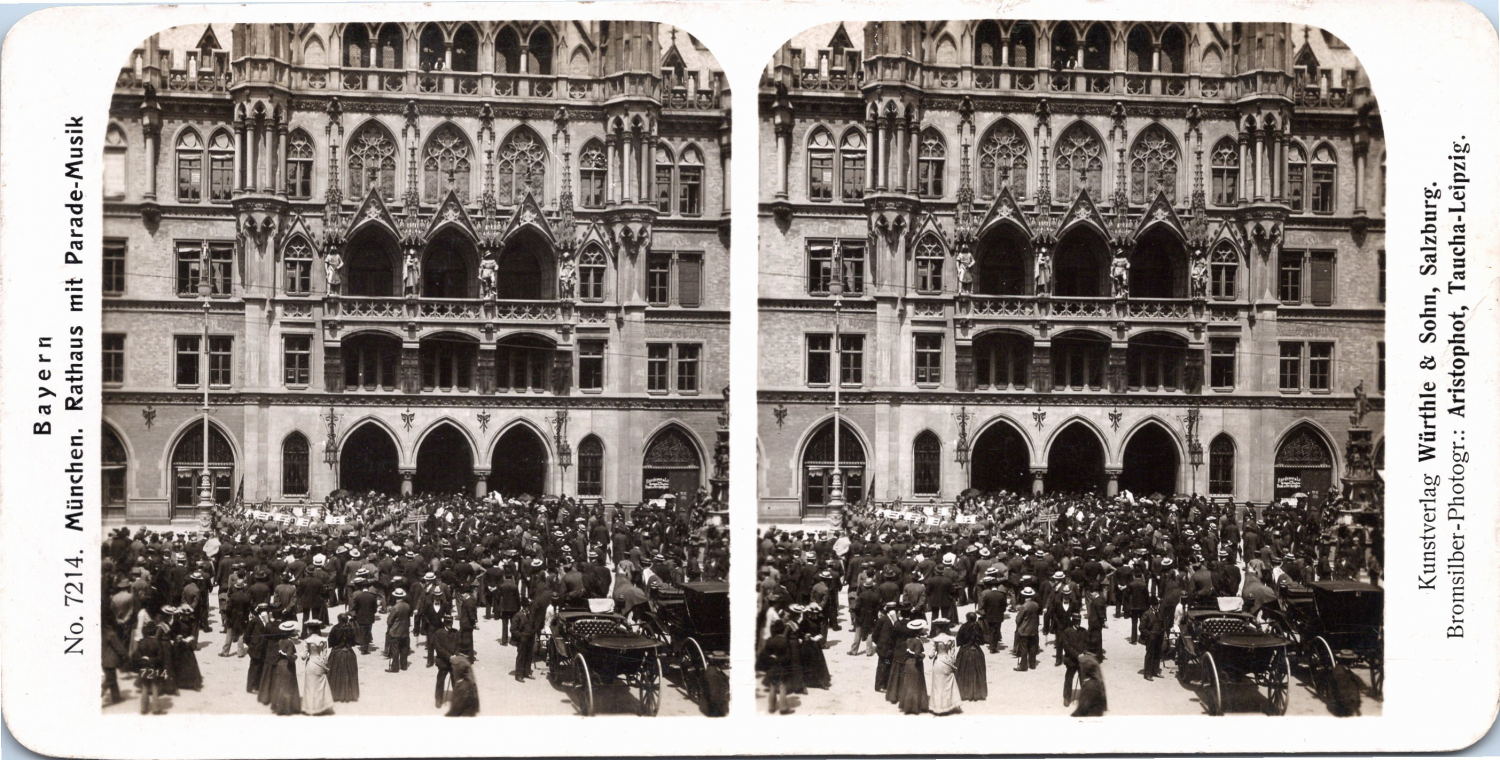 Allemagne, Munich (München), Orchestre devant l'Hôtel de Ville, Vintage print, ca.1900, Stéréo