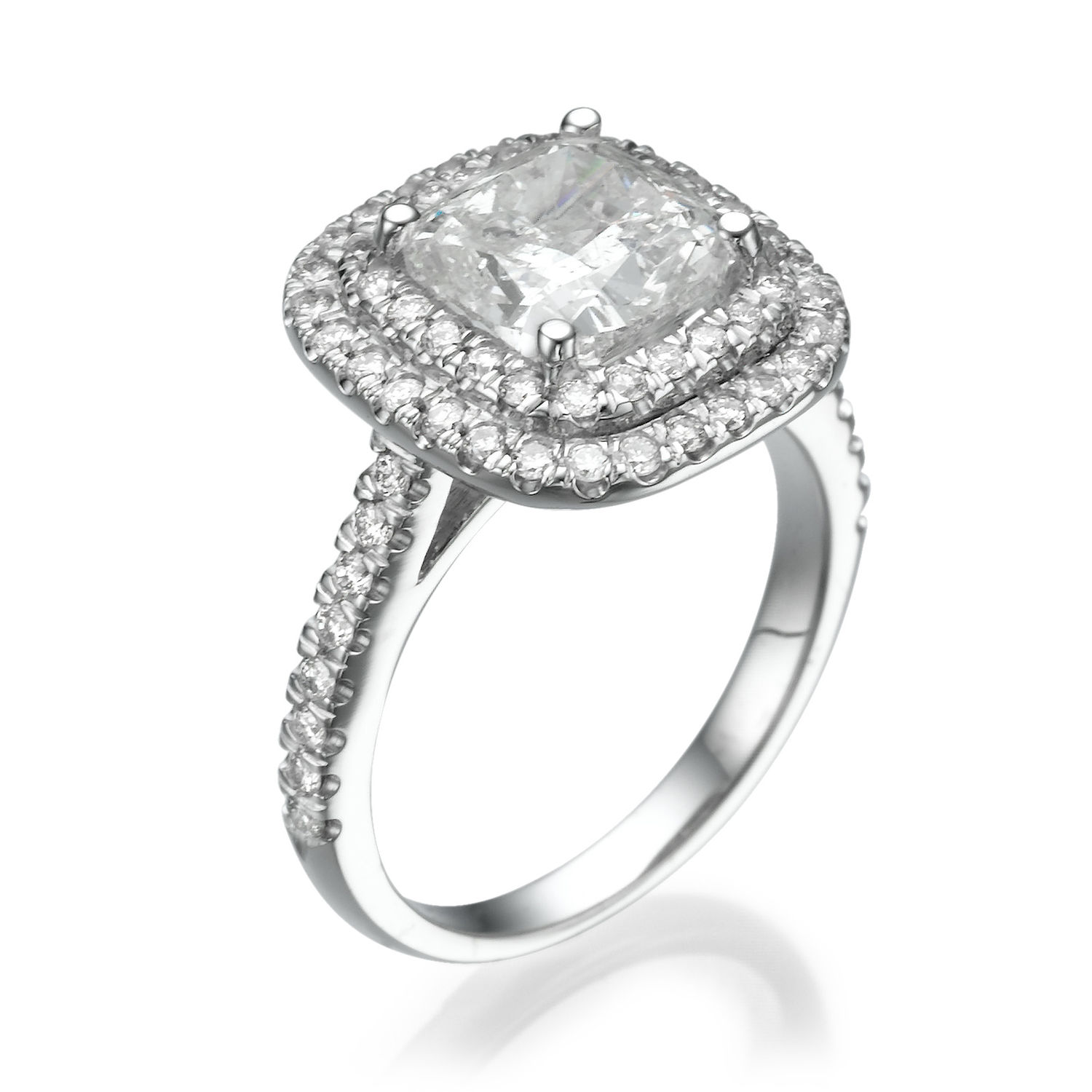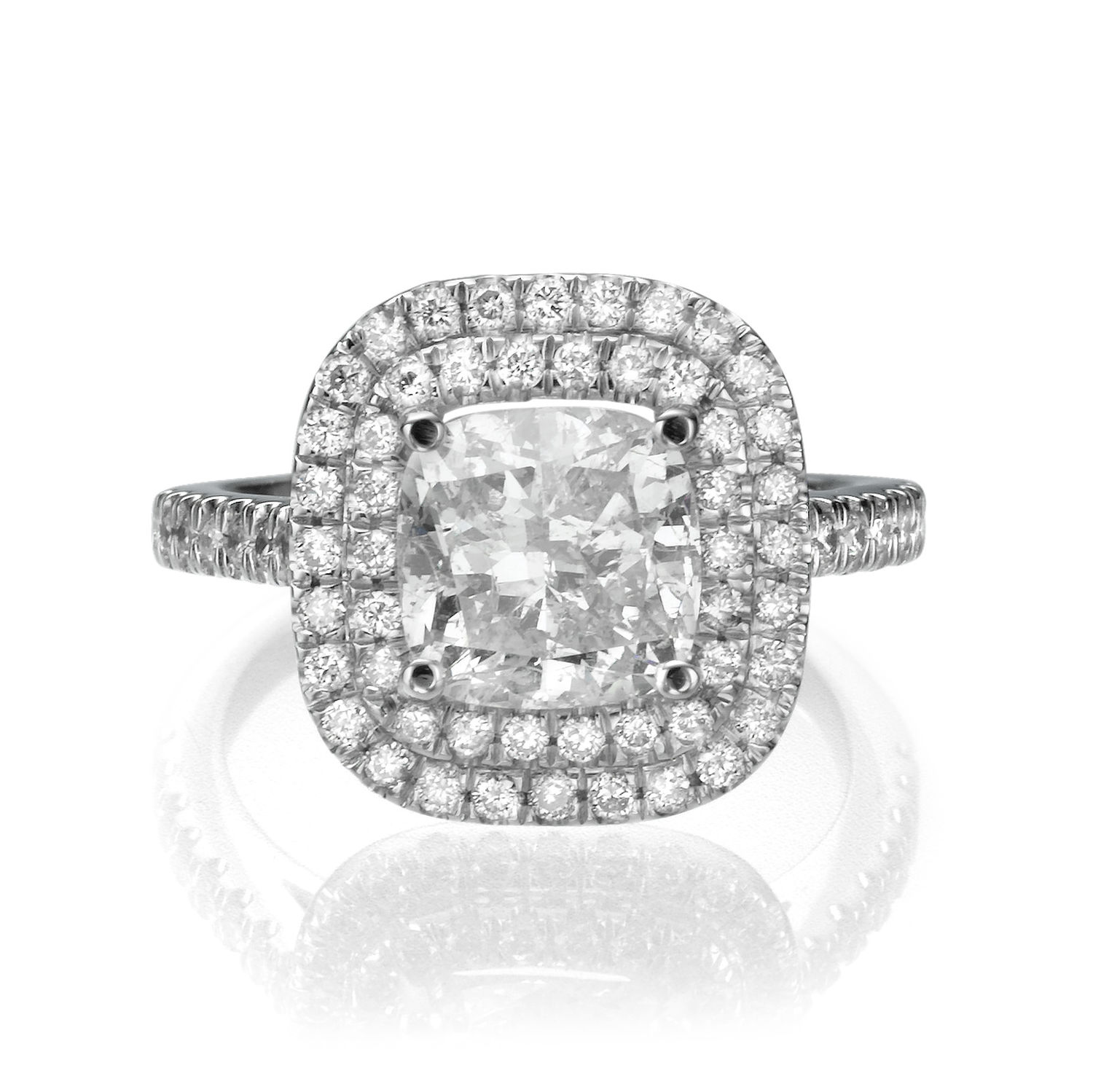 2 1/5 CT Diamond Engagement Ring Cushion Cut H/SI2 14K White Gold Size 7