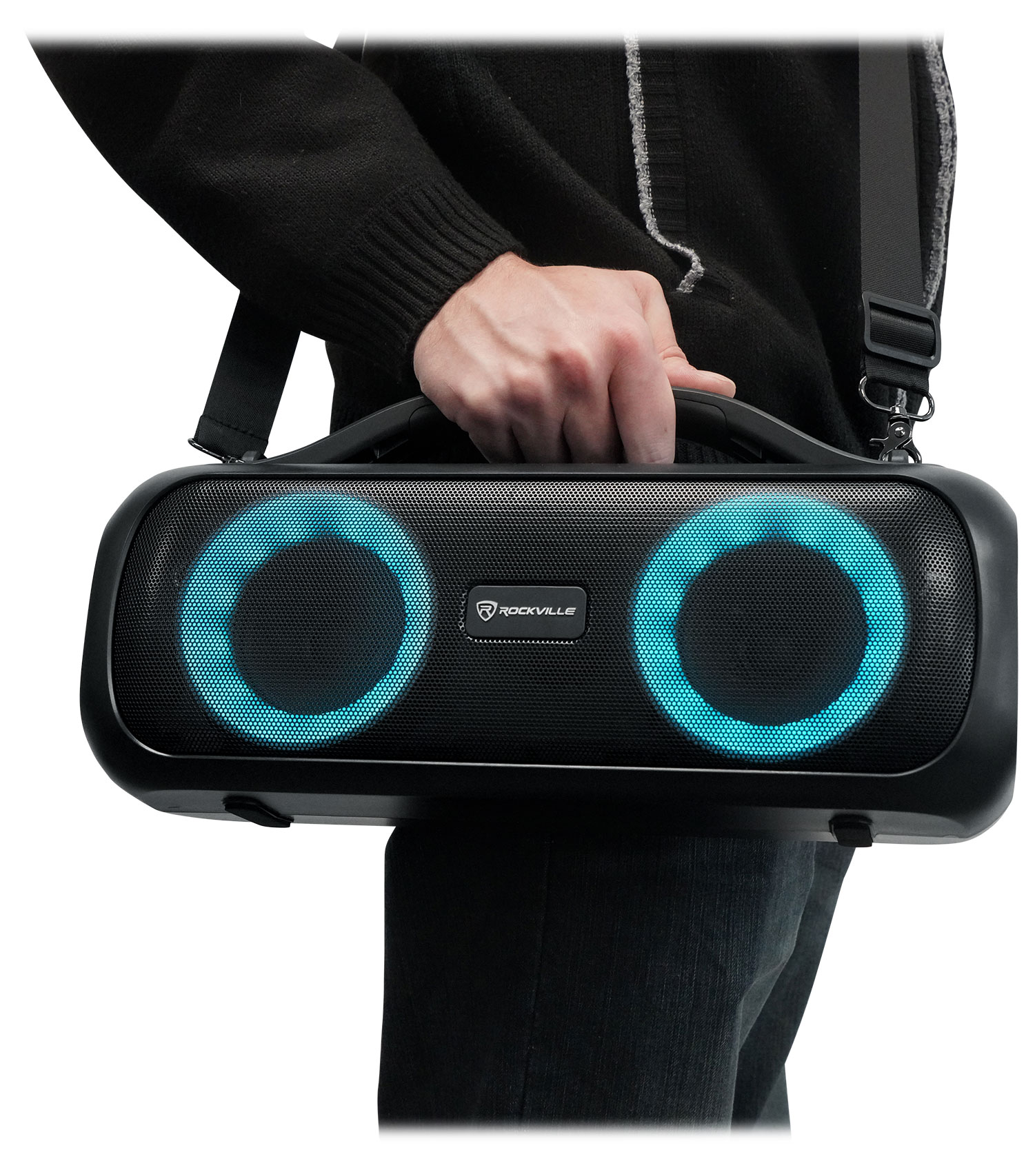 The Go Party D4 is a very large portable Bluetooth speaker with really cool LED lights, and 2 passive radiator woofers that play deep bass frequencies.