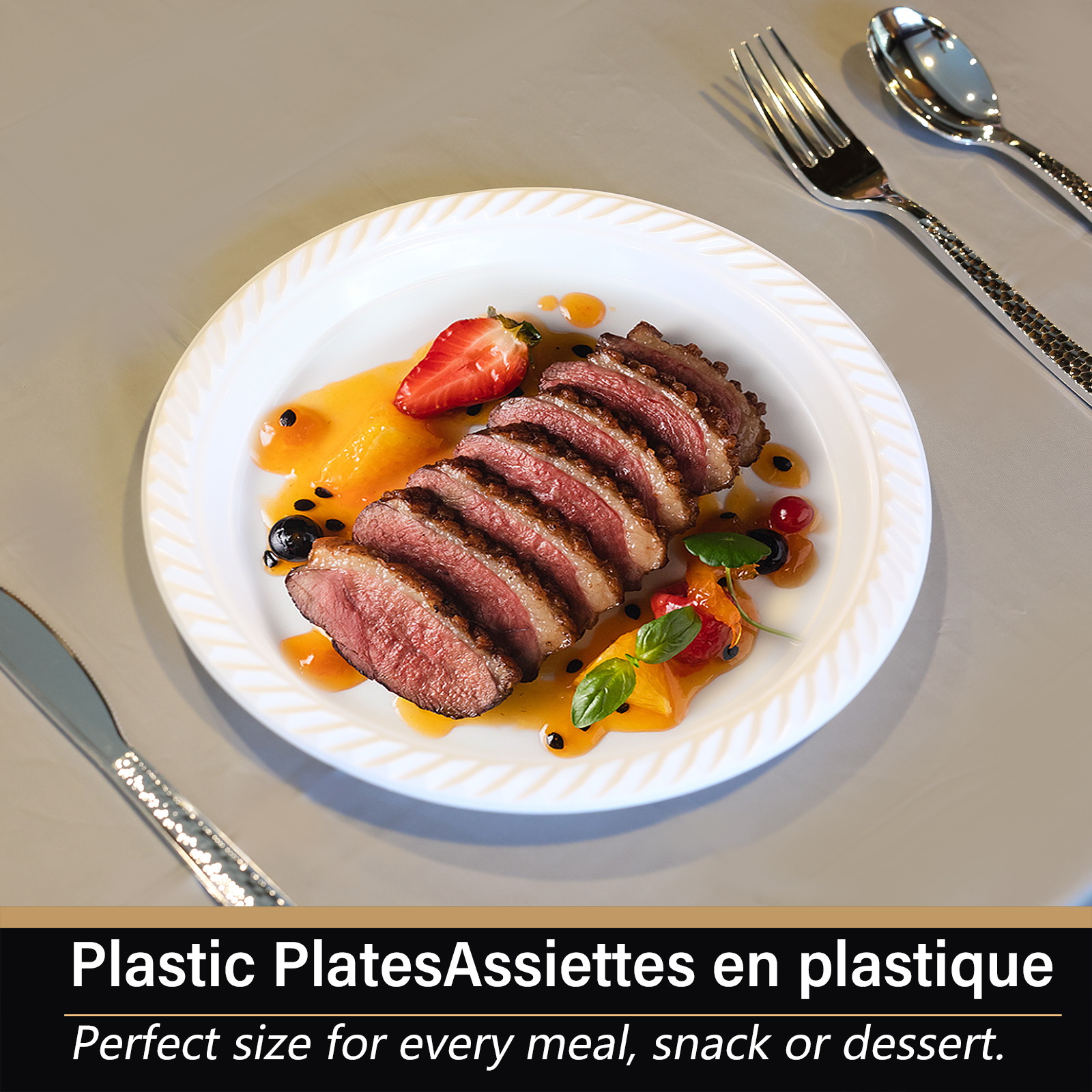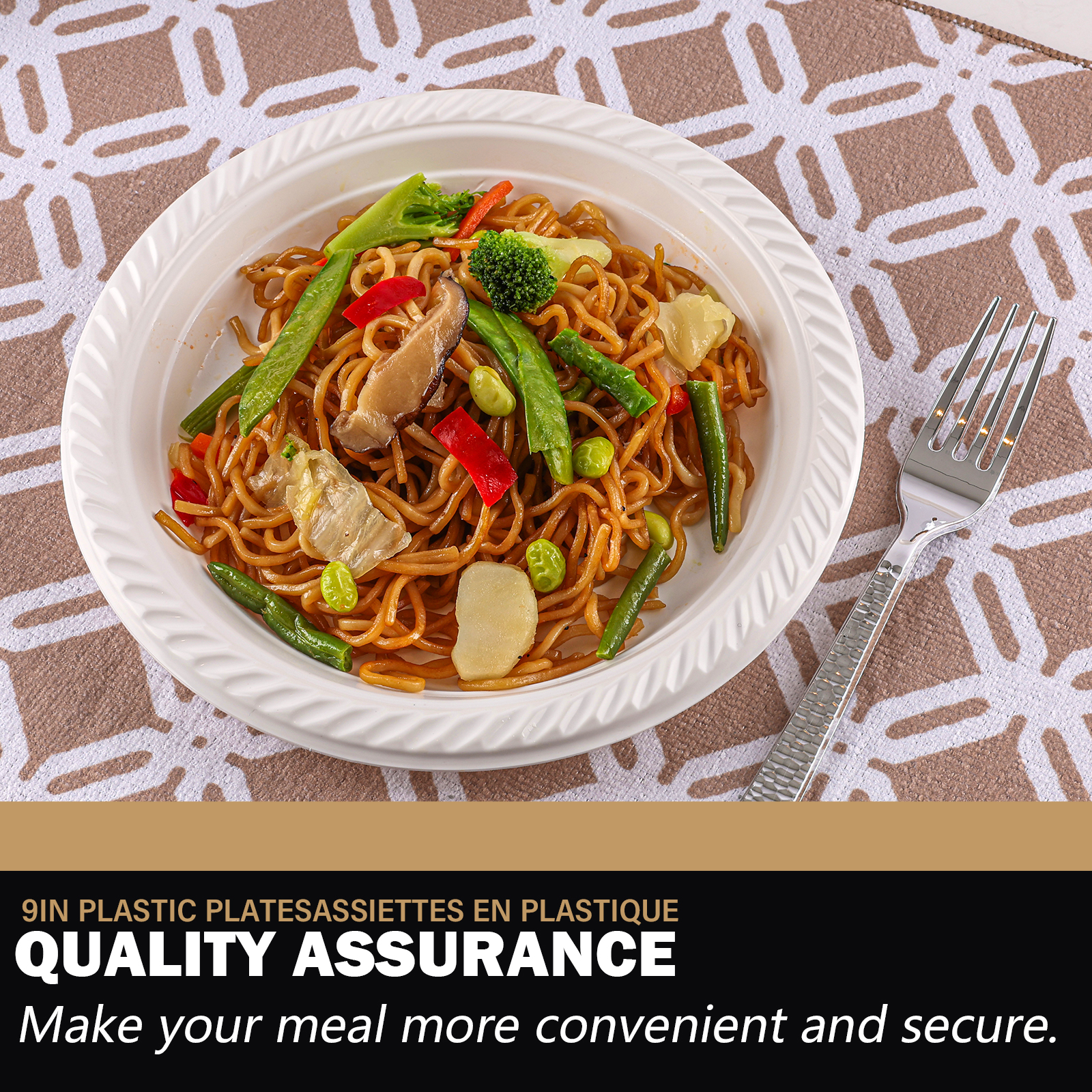 Our white plastic plate is crafted from food-grade, BPA-free PP material, ensuring it's safe, environmentally friendly, and odor-free.