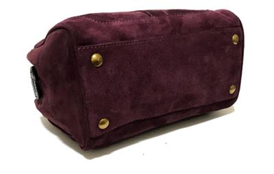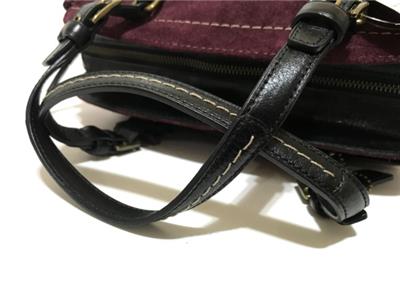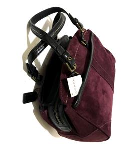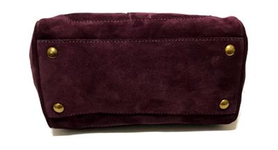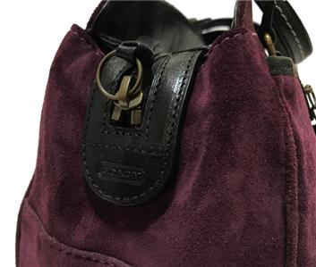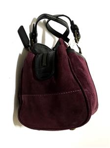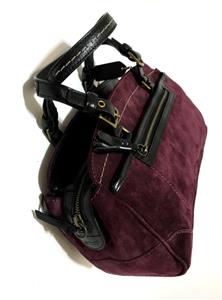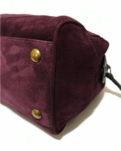 This bag is NEW WITH TAGS and in pristine mint condition. It has never been used so I am sure you won't be disappointed. Beautiful Crisp Suede Leather in Awesome AUGBERGINE color that sure to TURN HEADS with pockets and details that is very functional to use and will never goes out of style. Really WONDERFUL in Small/Medium Size! I am sure you will really be please with this purchase. This would absolutely make a beautiful and useful gift for someone special. Comes wrapped in tissue paper.