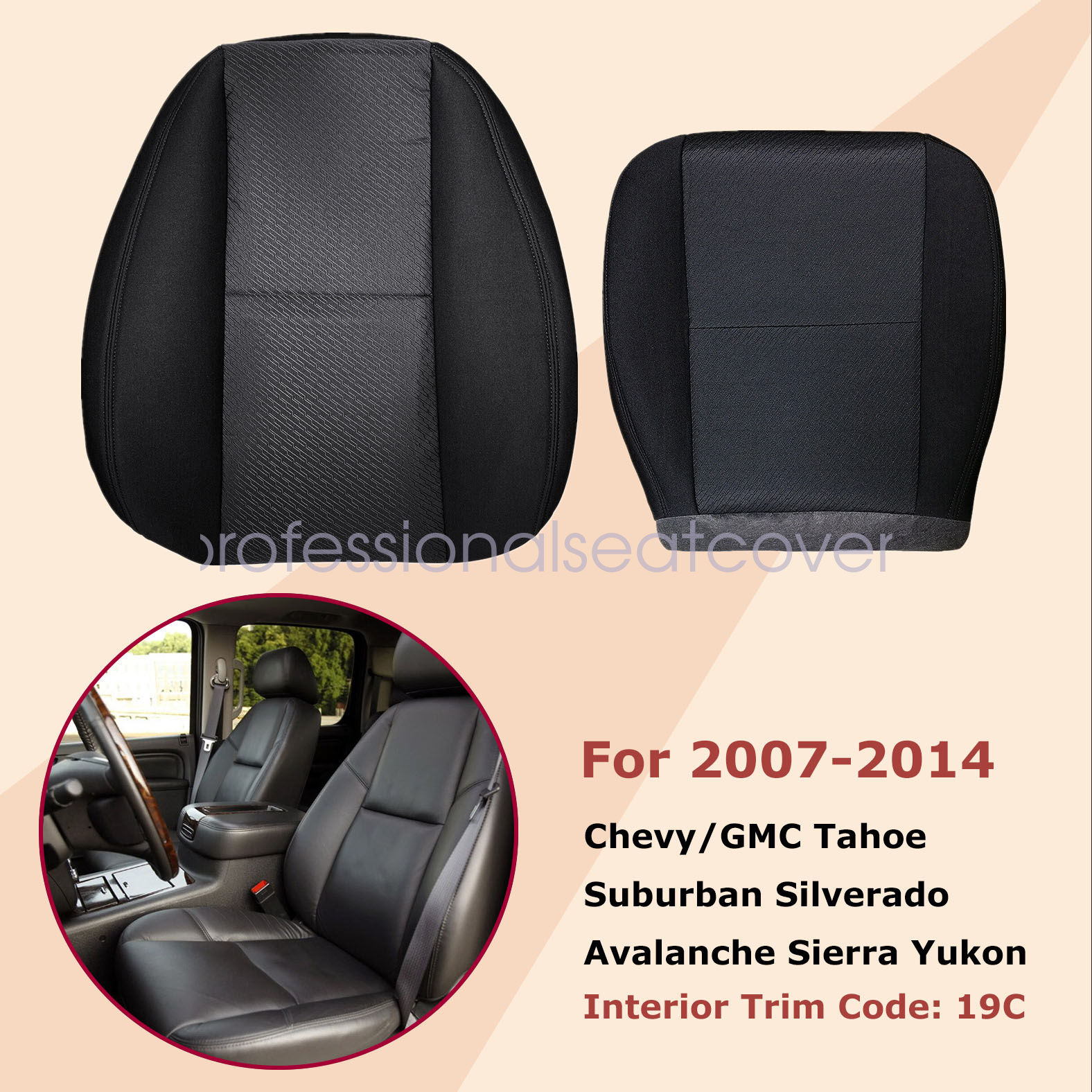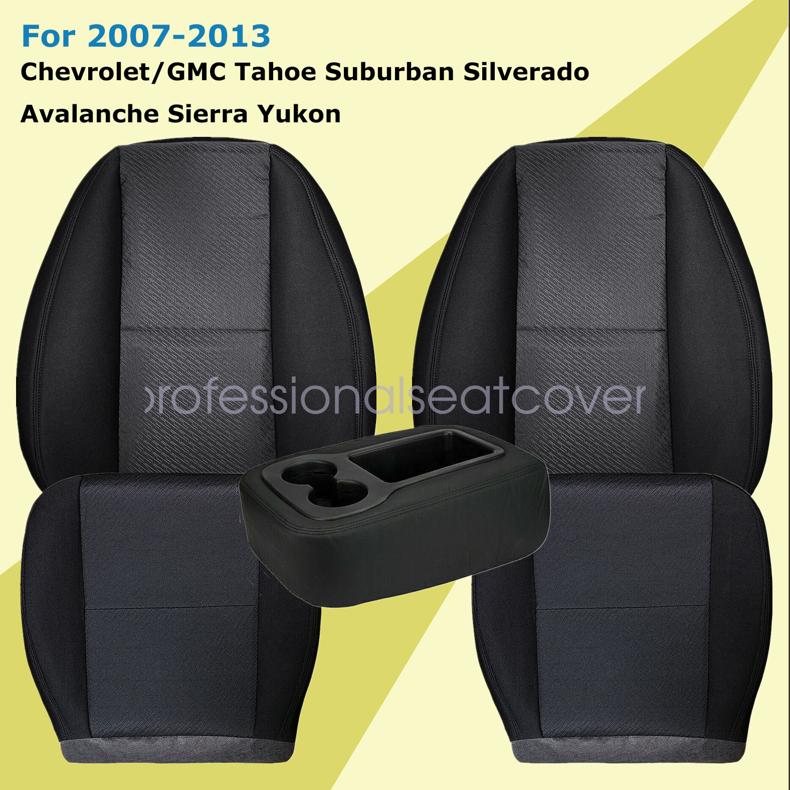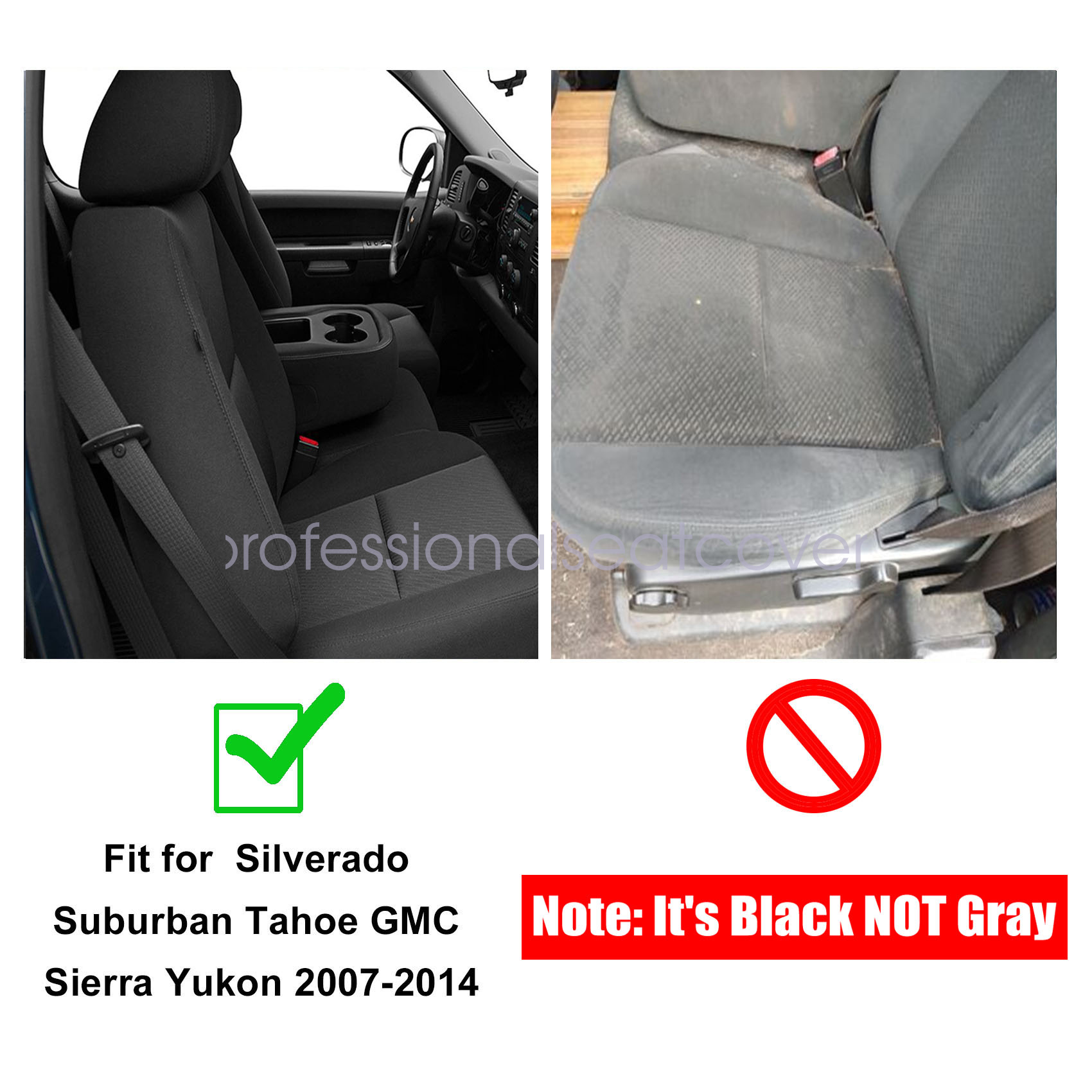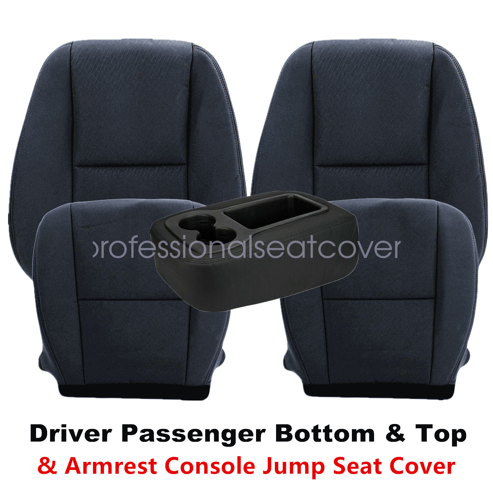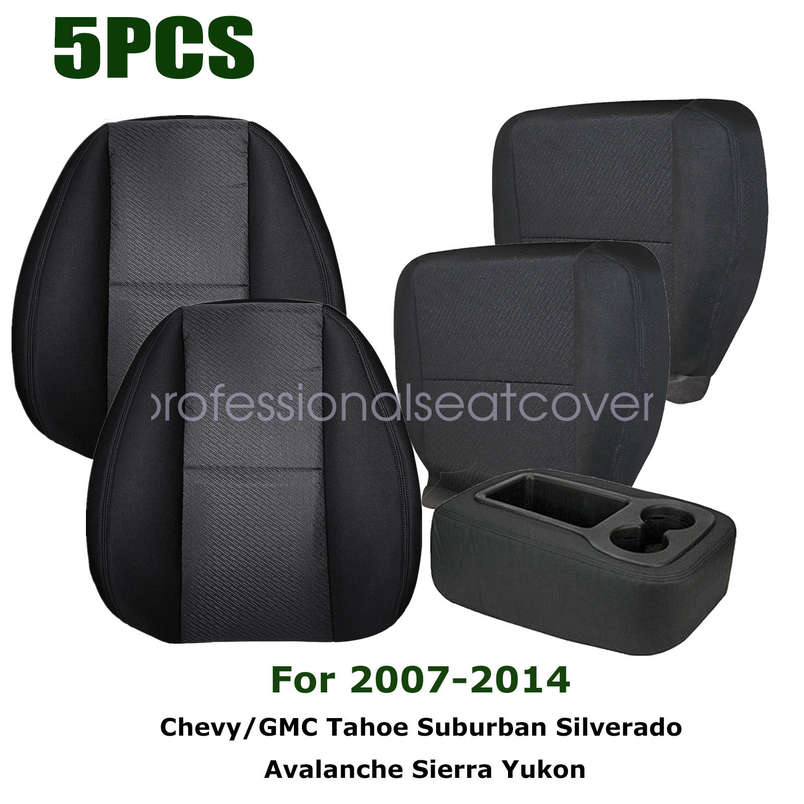 Replacement For 2007-2014 Chevy Silverado GMC Sierra 1500 2500 3500 HD Driver & Passenger Side Replacement Cloth Bottom & Lean Back Seat Cover & Leather Console Armrest Cover Black