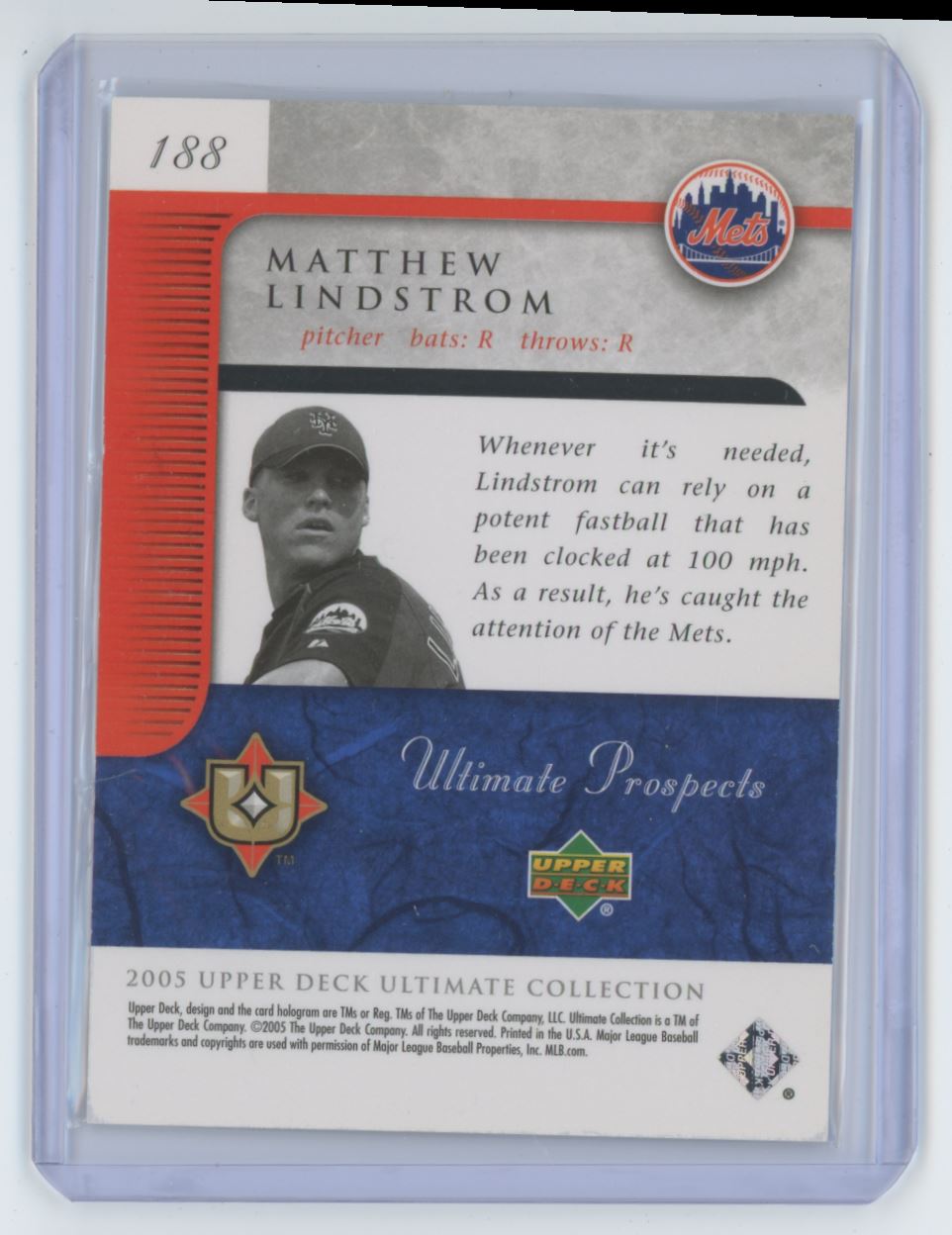 | 2005 Upper Deck Ultimate Prospects 125/275 188 Matthew Lindstrom |